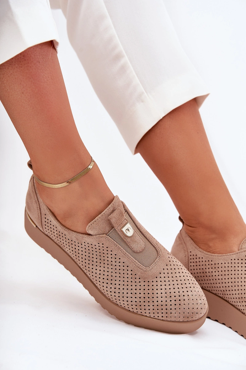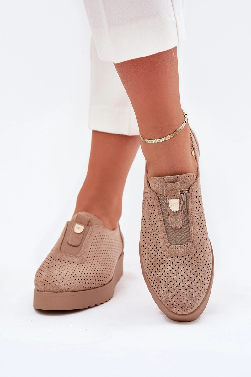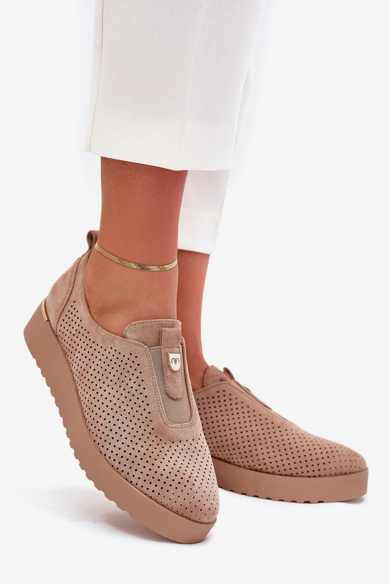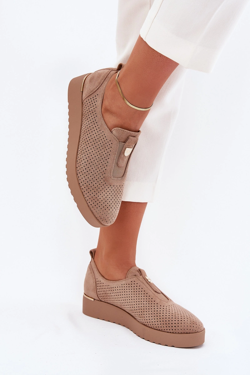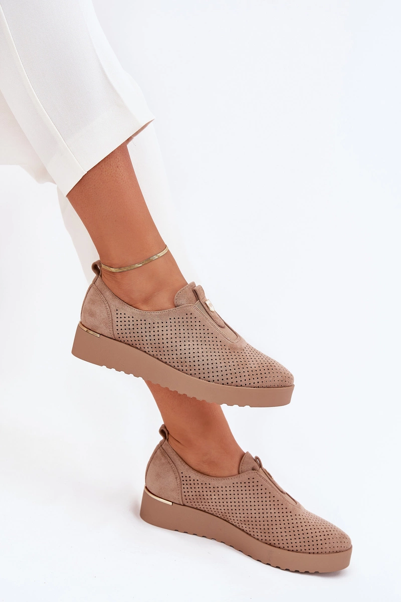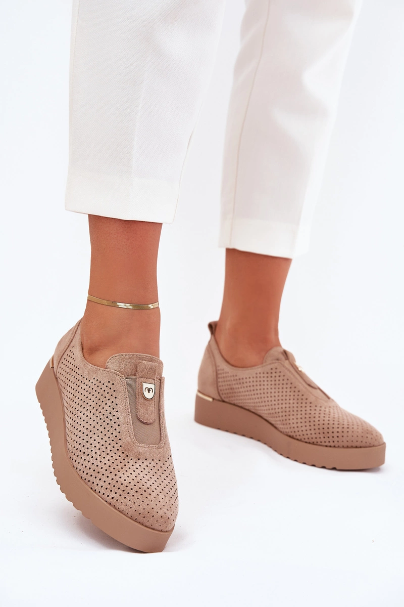 Półbuty Damskie Na Platformie Z Eko Zamszu Ciemnobeżowe Aviara