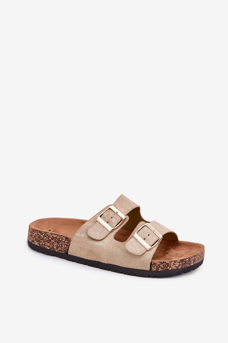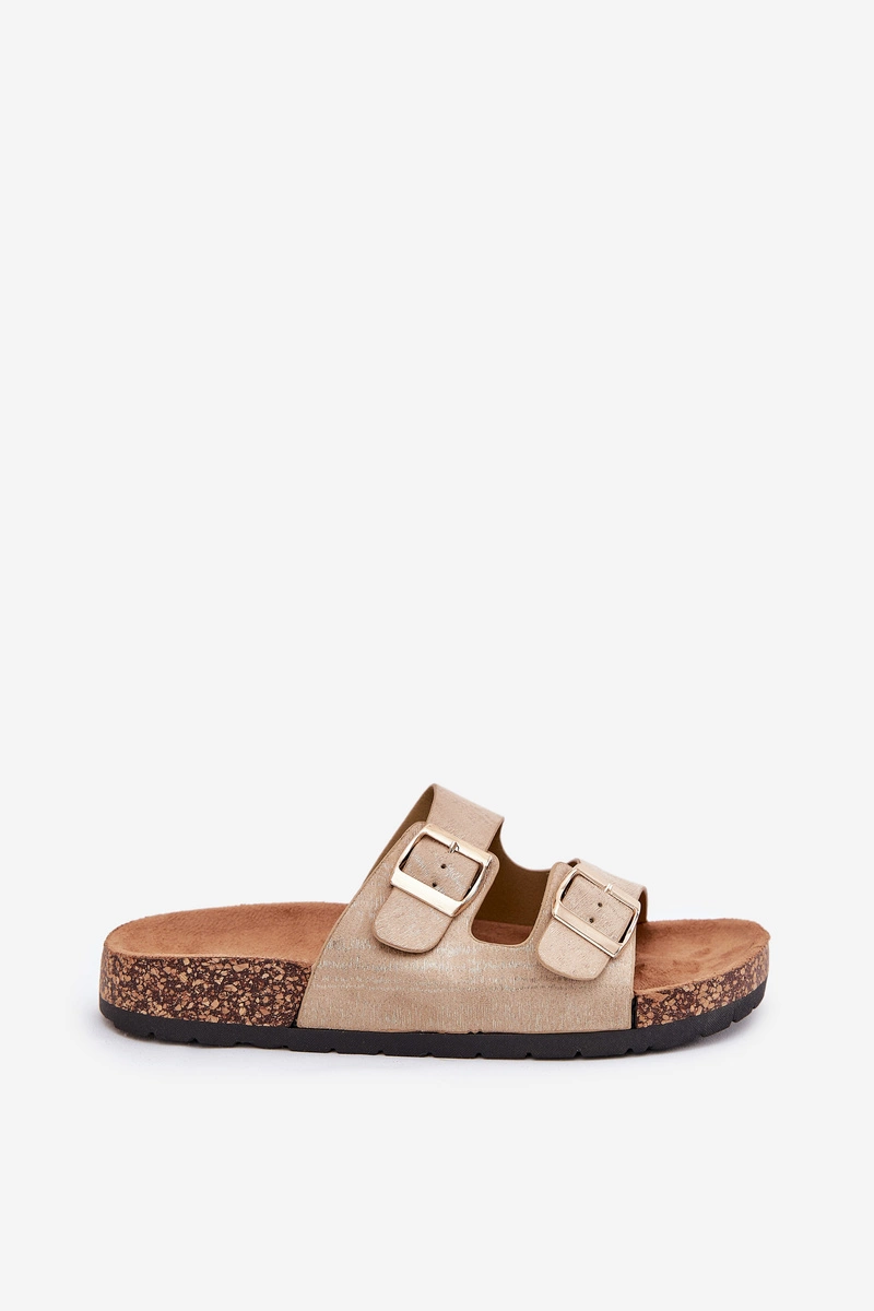 Damskie Klapki Wsuwane Na Korkowej Podeszwie Złote Cortina