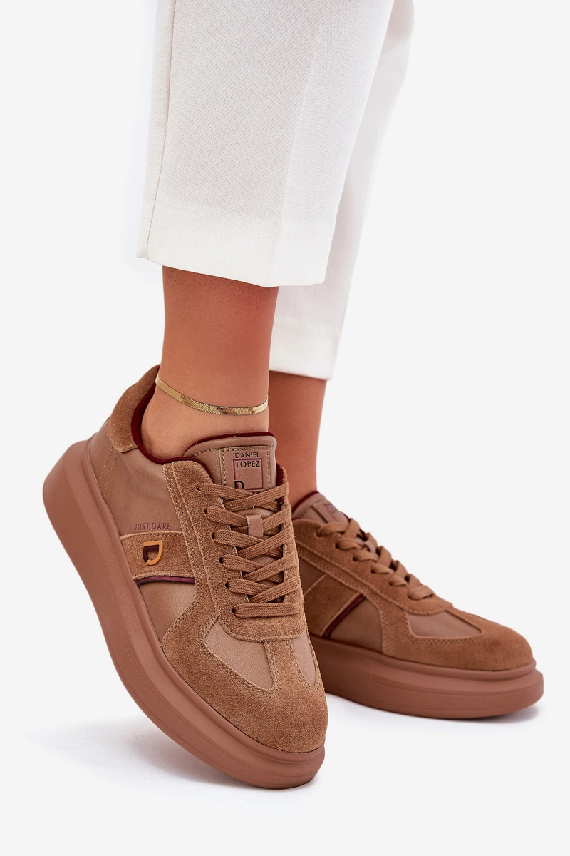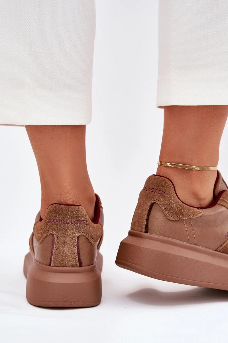 Skórzane Damskie Sneakersy Na Platformie Daniel Lopez Just Dare SS2D4005 Brązowe