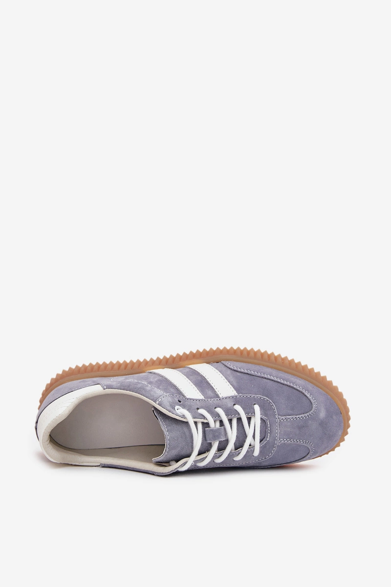 Sneakersy damskie z naturalnego zamszu, osadzone na platformie, to połączenie wygody i modnego wyglądu. Zaokrąglone noski oraz skórzana wkładka zapewniają komfort przez cały dzień. Idealne na co dzień, doskonale komponują się z dżinsami, sukienkami czy spódnicami. Przy wyborze rozmiaru prosimy kierować się tabelą rozmiarów.