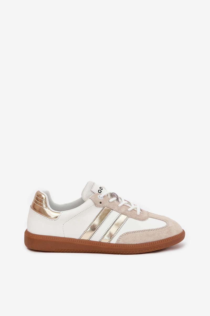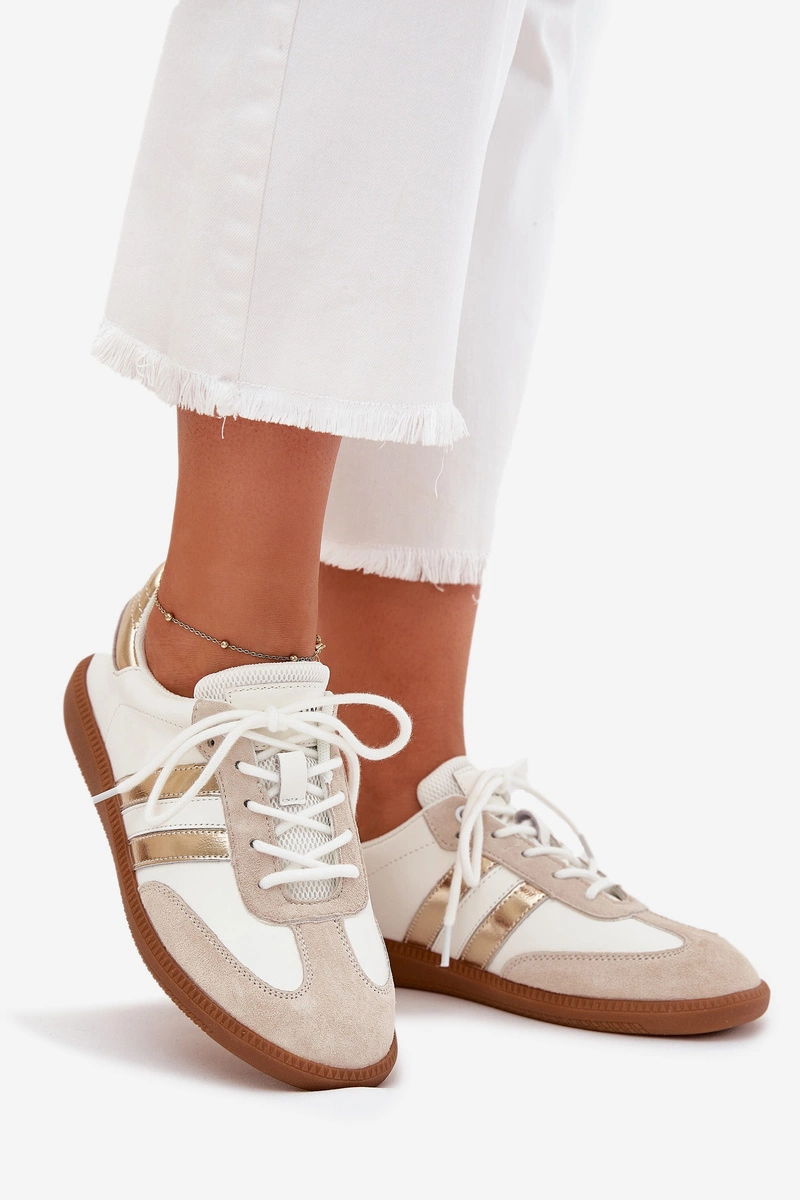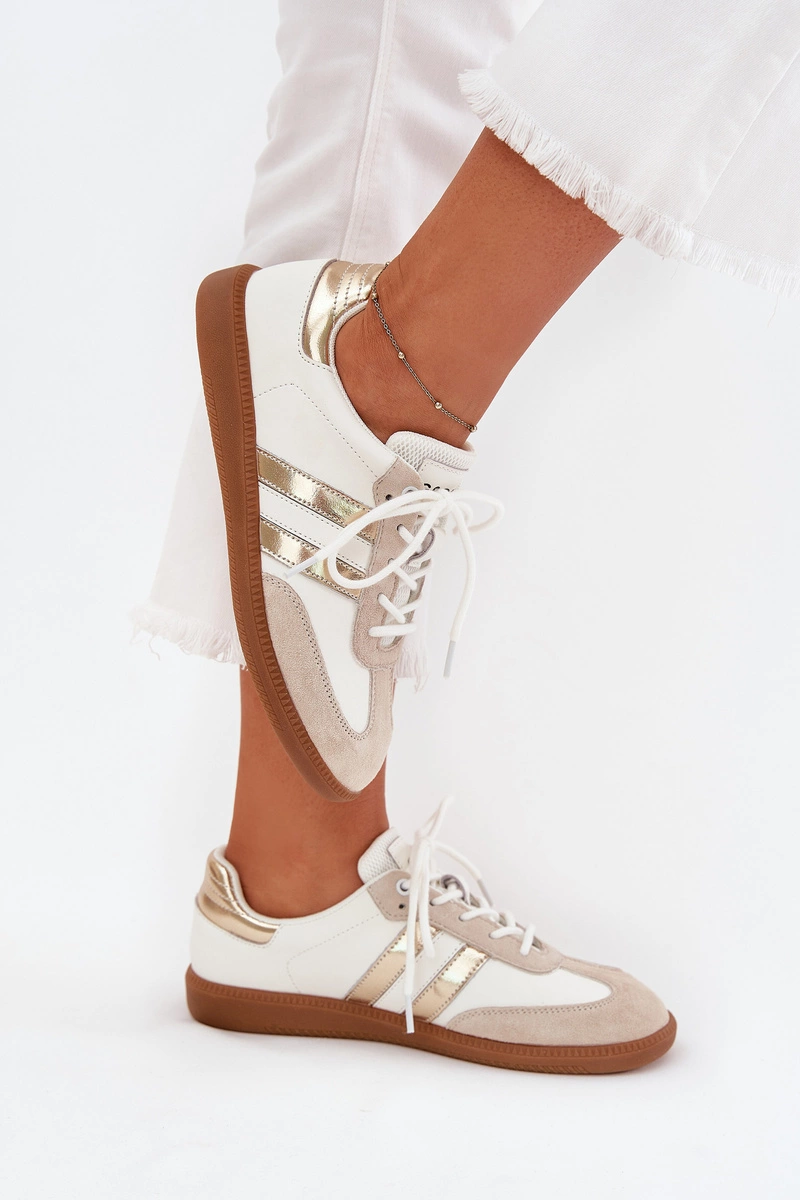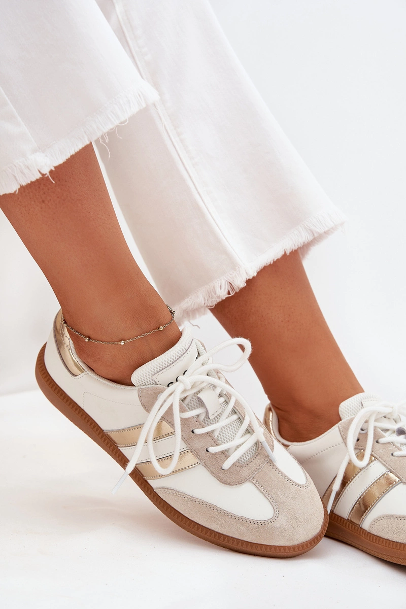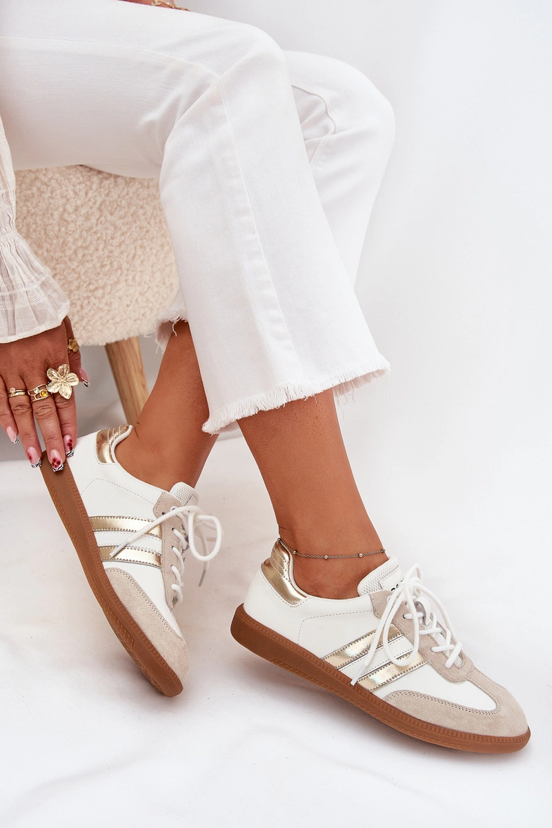 Niskie Skórzane Sneakersy Damskie Biało-Złote Ismina