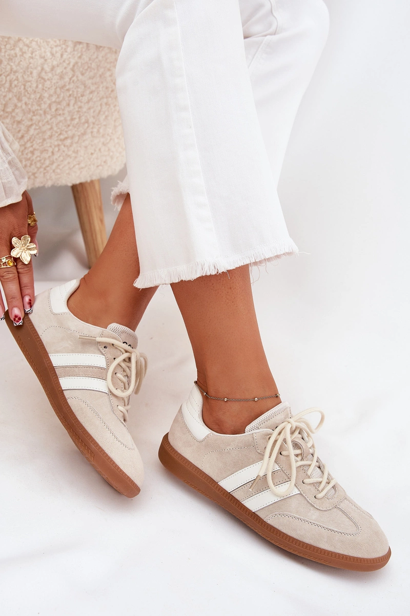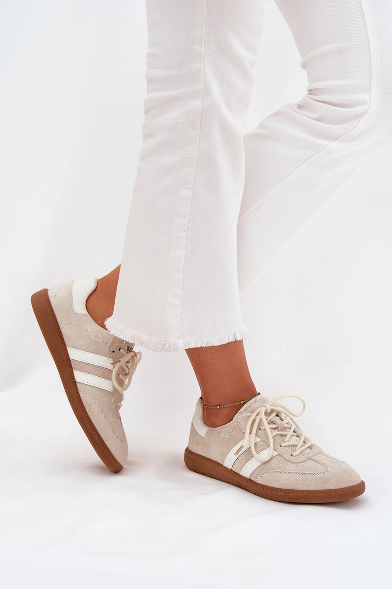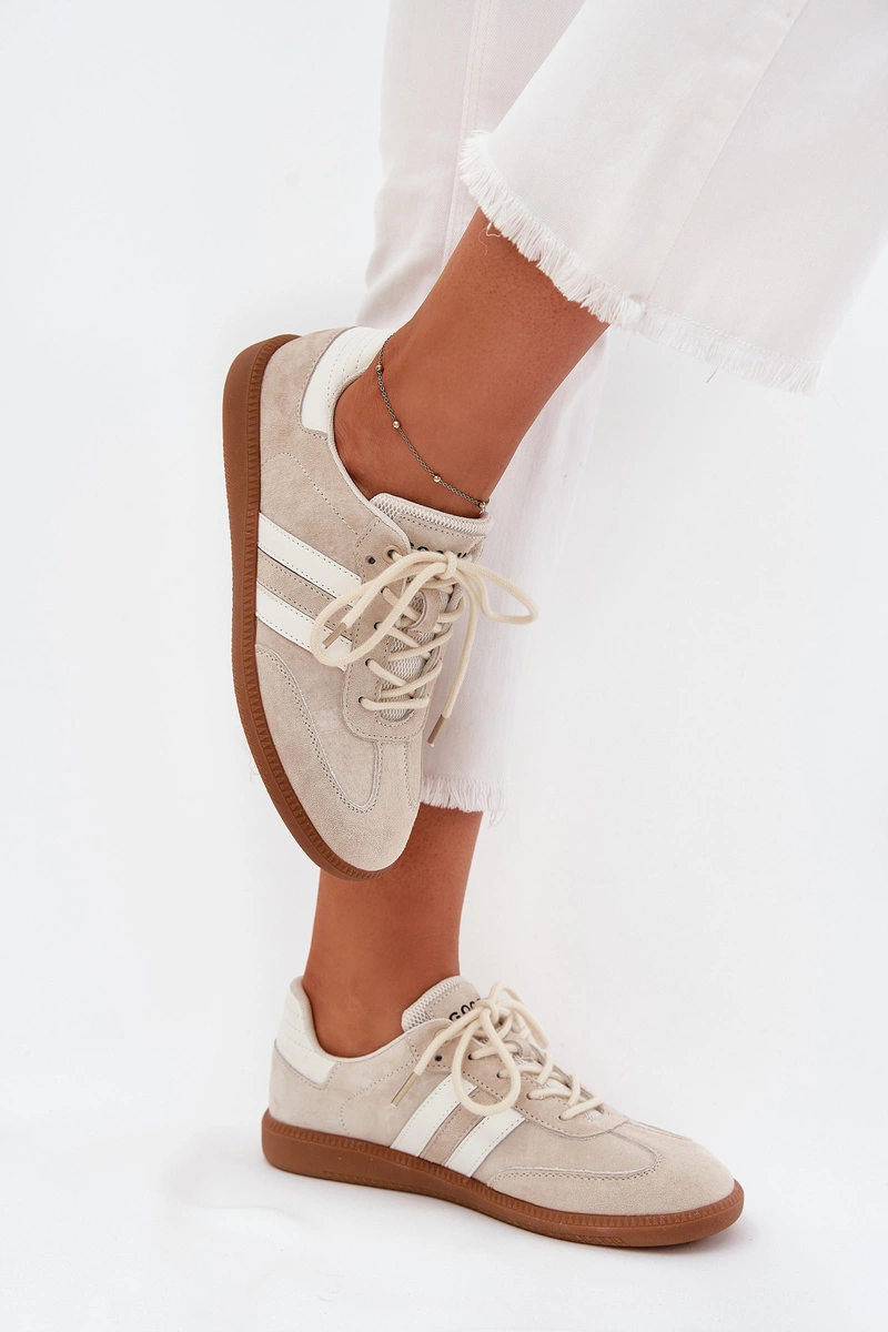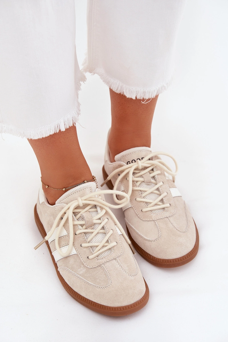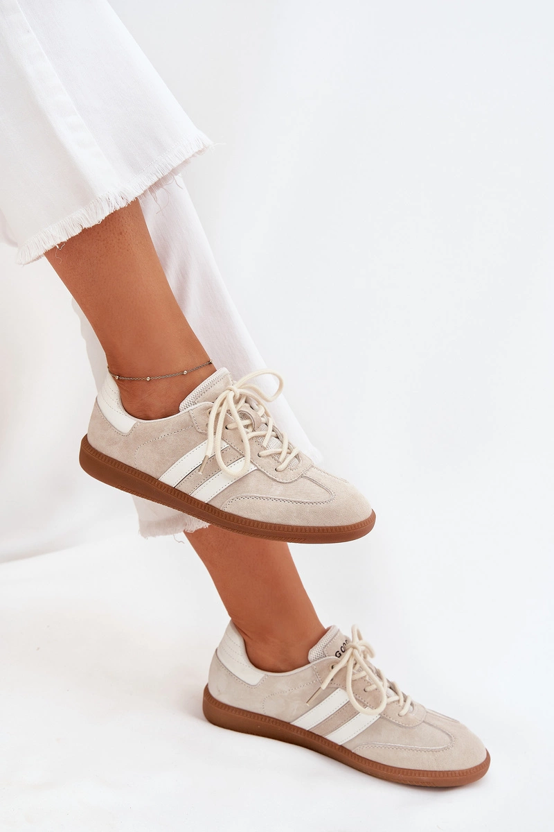 Niskie Skórzane Sneakersy Damskie Beżowe Ismina