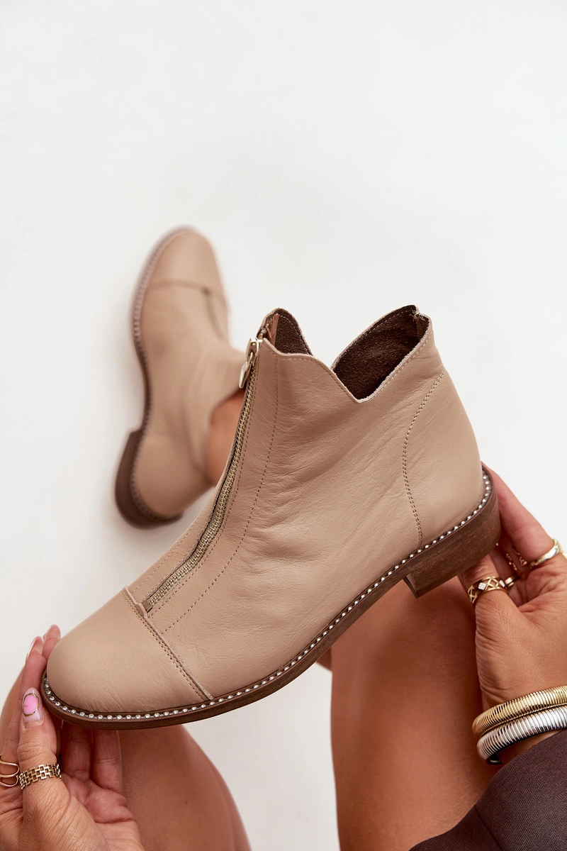 Skórzane Botki Na Suwak Zazoo 2785/079 Beżowe