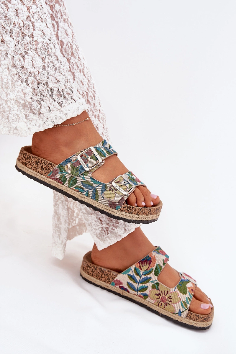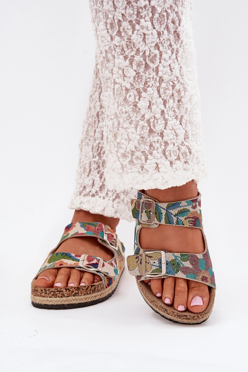 Wzorzyste Klapki Damskie Na Korkowej Platformie Z Klamrami Lee Cooper LCW-25-35-3480L Multikolor