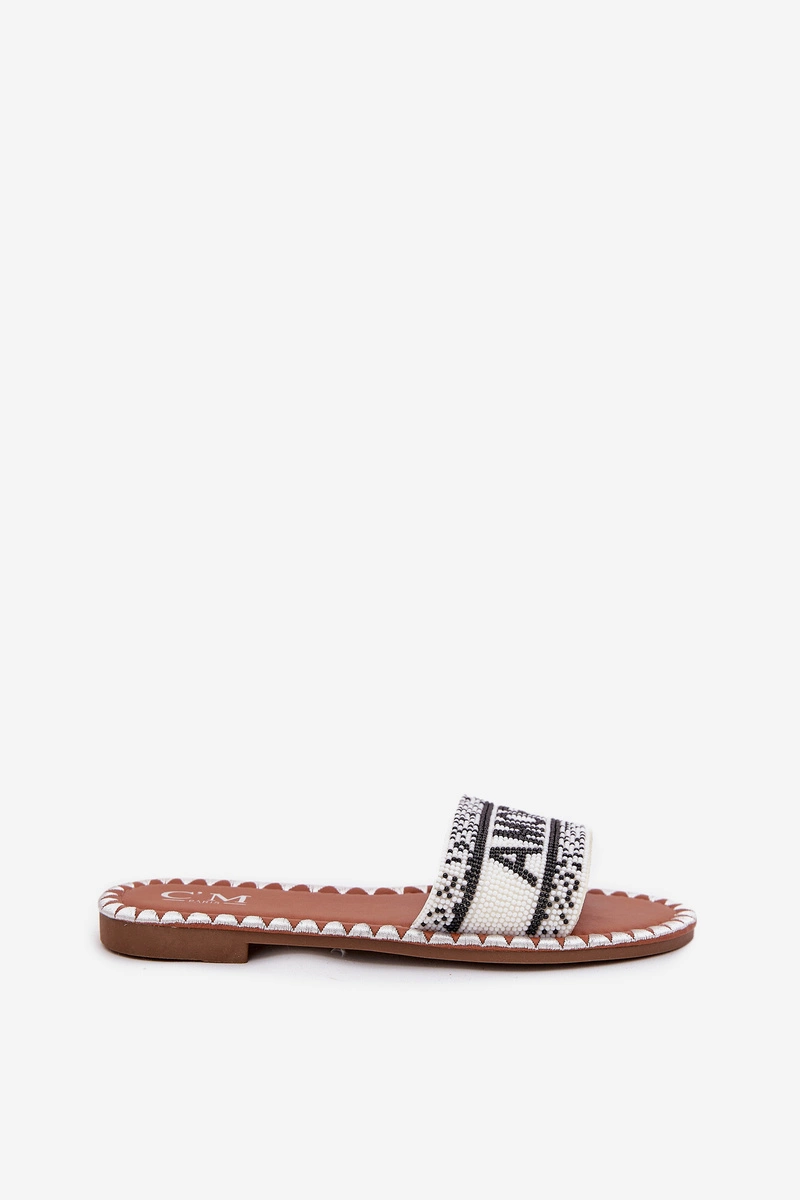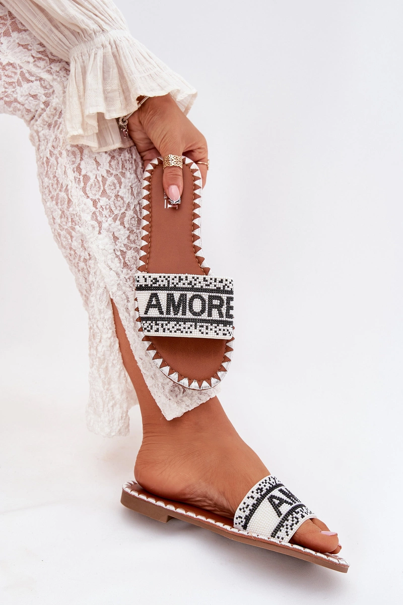 Klapki Damskie Na Płaskim Obcasie Ze Zdobieniem Amore Białe Avelina