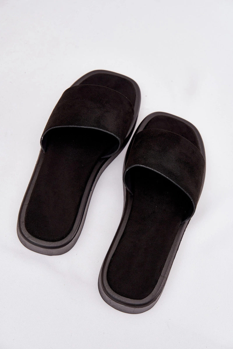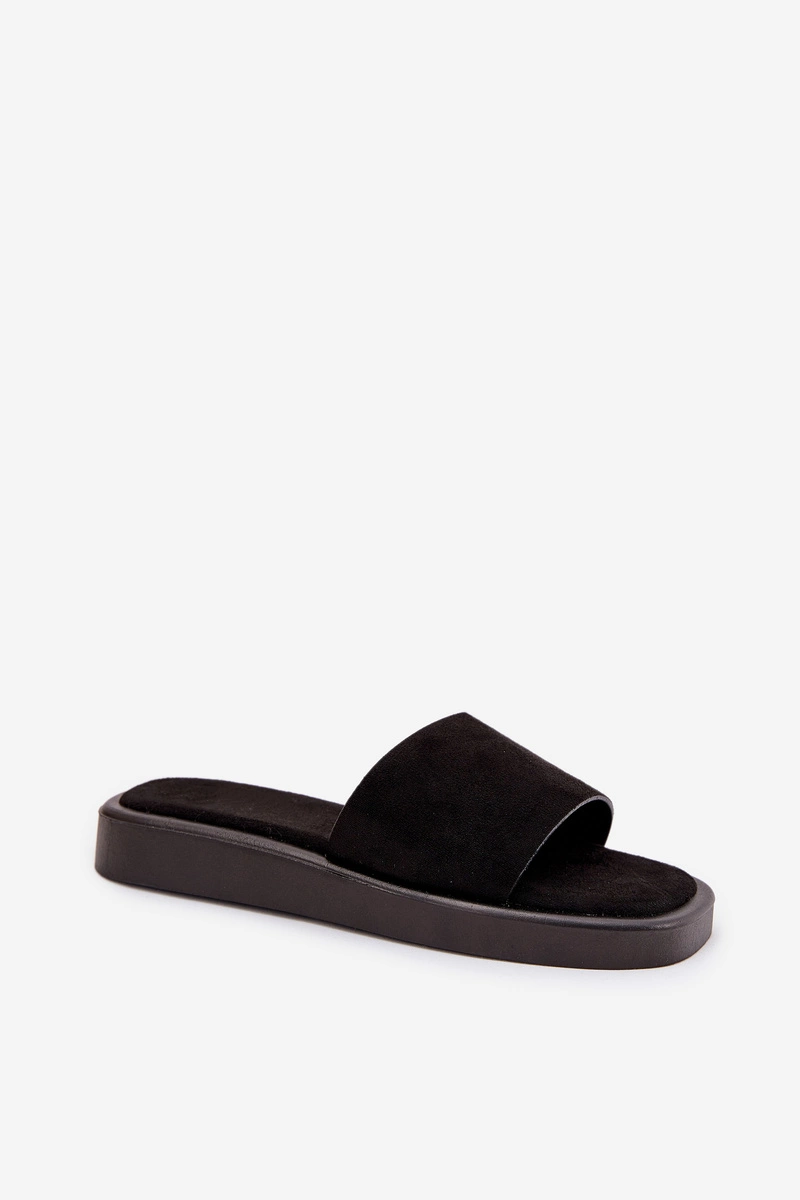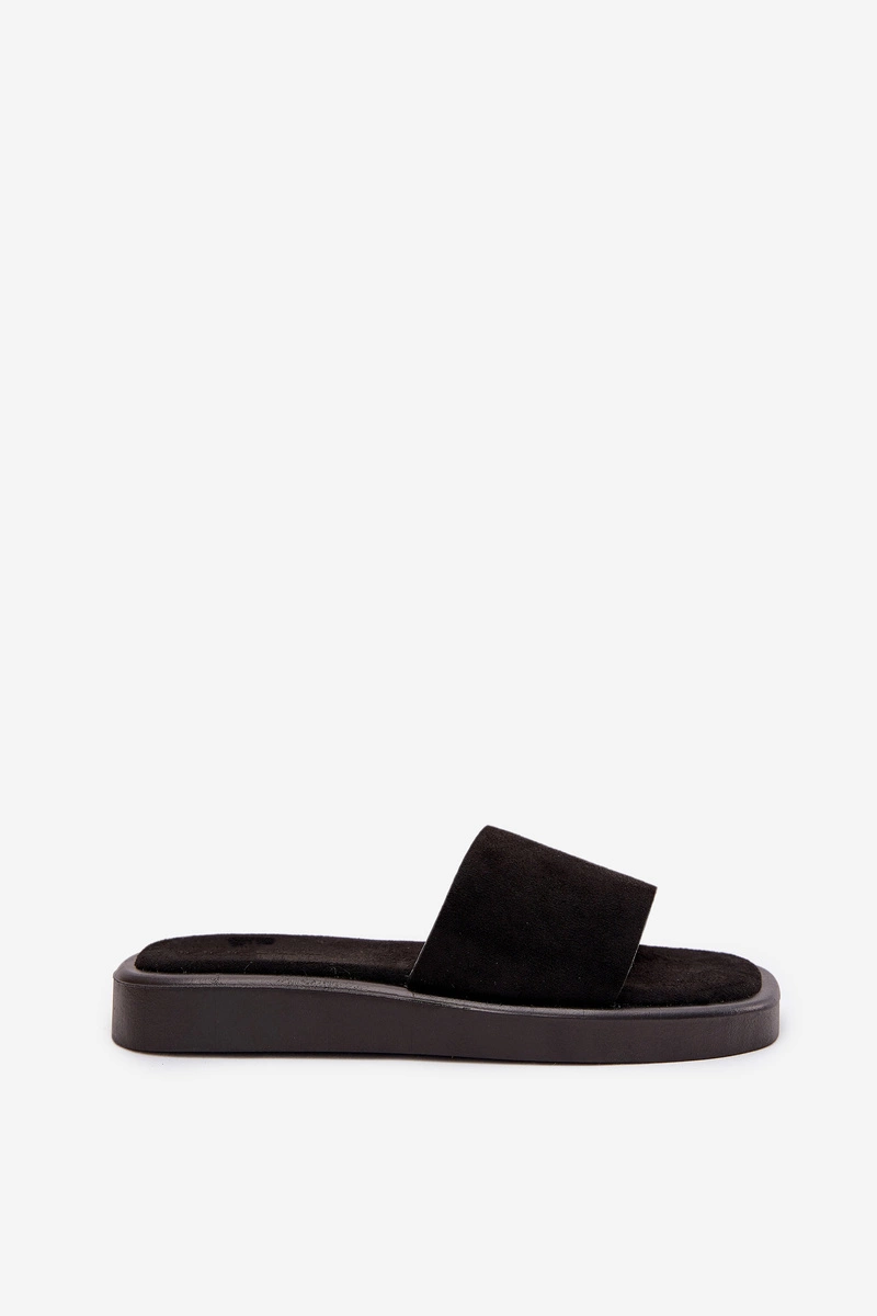 Klapki Damskie Na Platformie Z Eko Zamszu Czarne Jorina