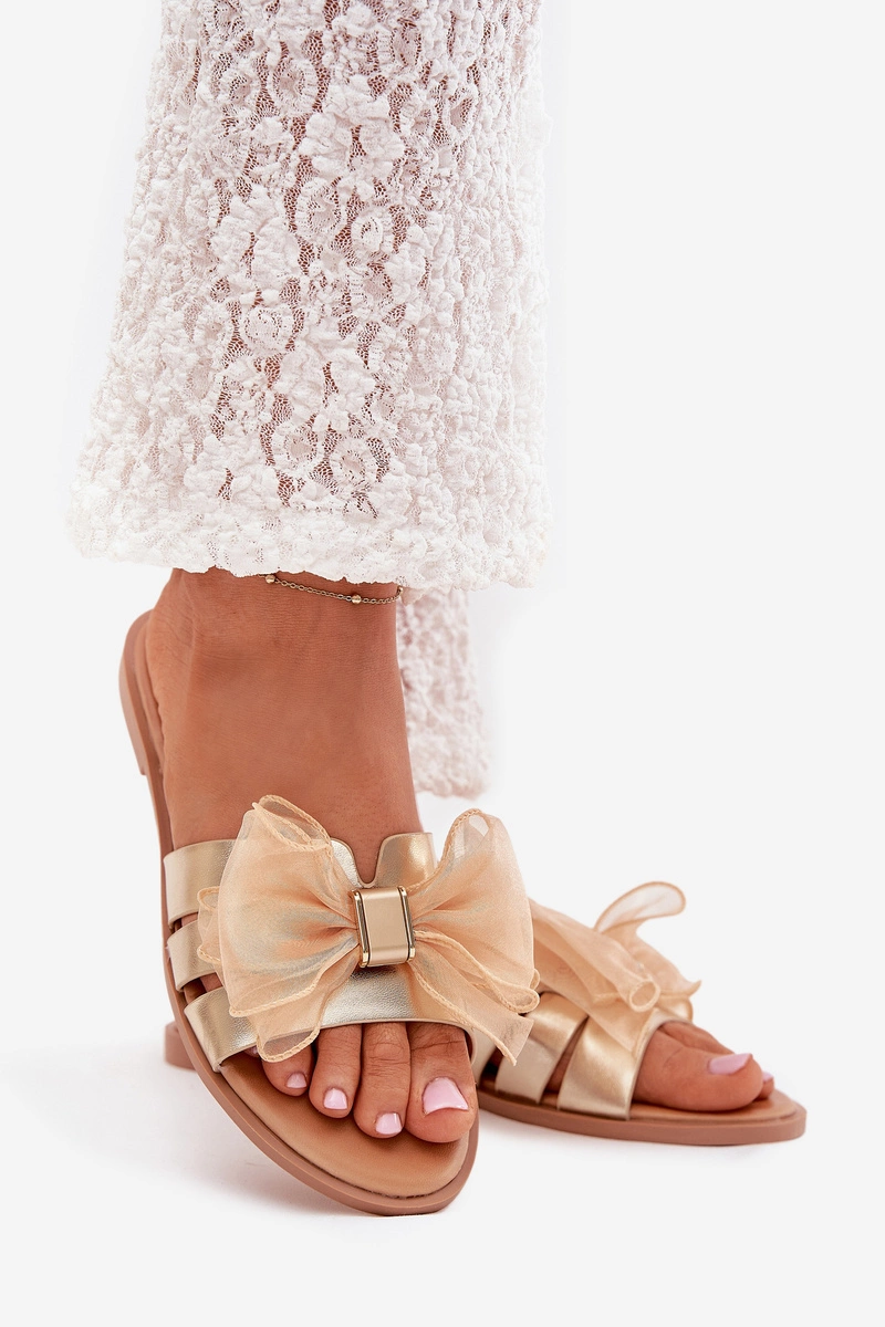 Klapki damskie z eko skóry, osadzone na płaskim obcasie, to doskonała propozycja na co dzień. Wyróżniają się tiulową kokardą. Idealne do letnich stylizacji, doskonale komponują się z sukienkami, spódnicami czy spodniami, łącząc prostotę z subtelnym urokiem. Przy wyborze rozmiaru prosimy sugerować się tabelą rozmiarów.