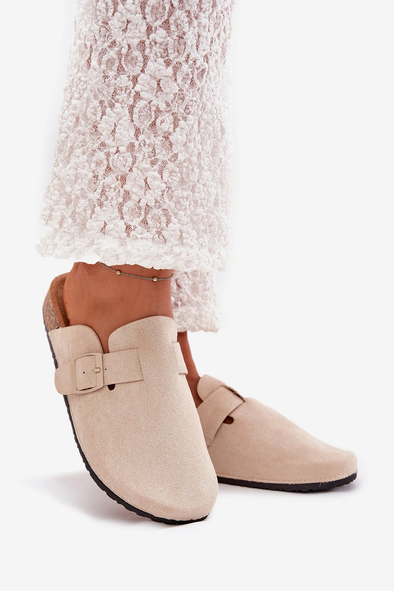 Klapki Chodaki Damskie i Na Korkowej Platformie Z Klamrą Jasnobeżowe Klarae