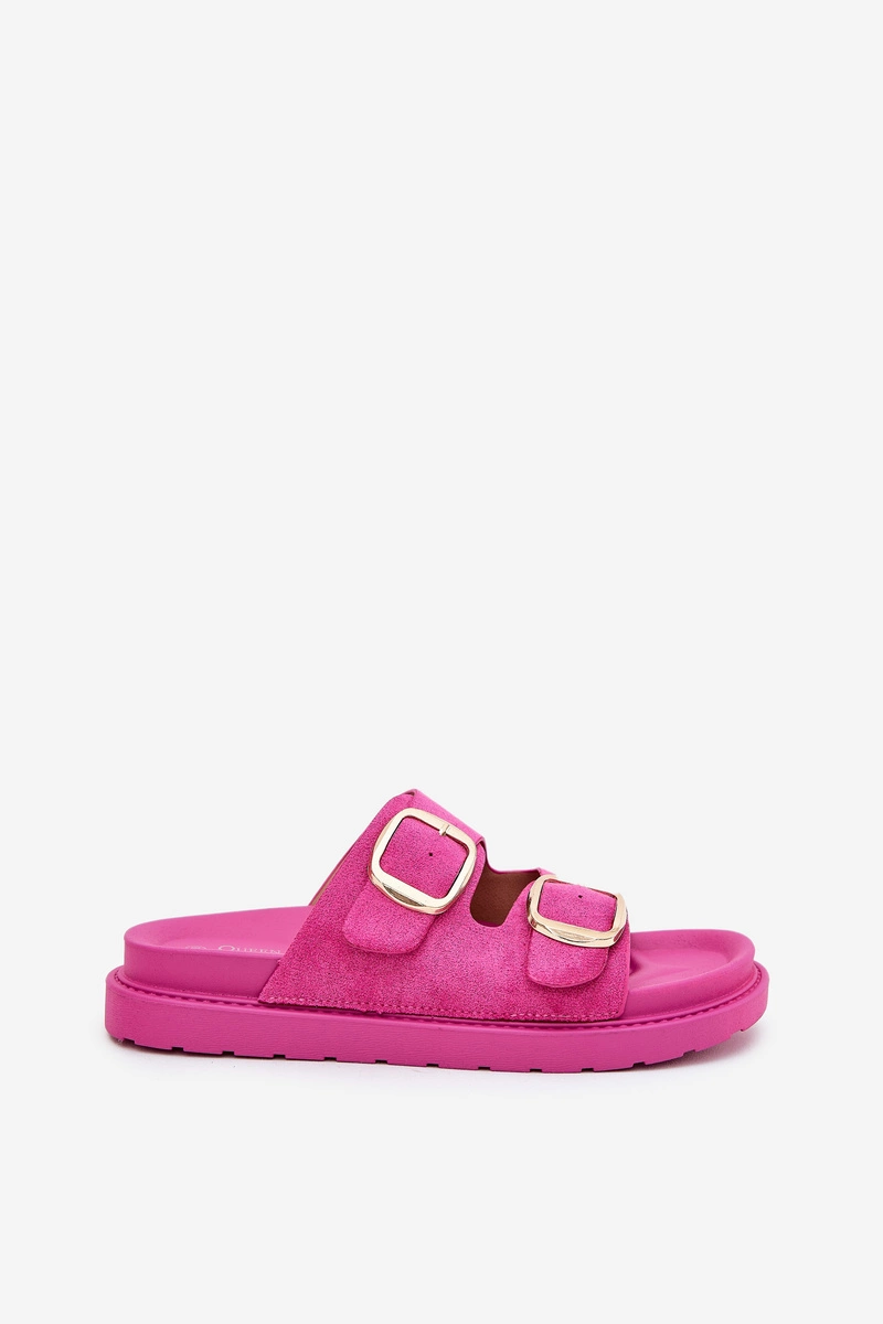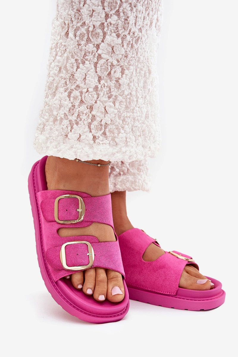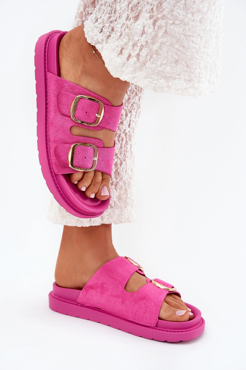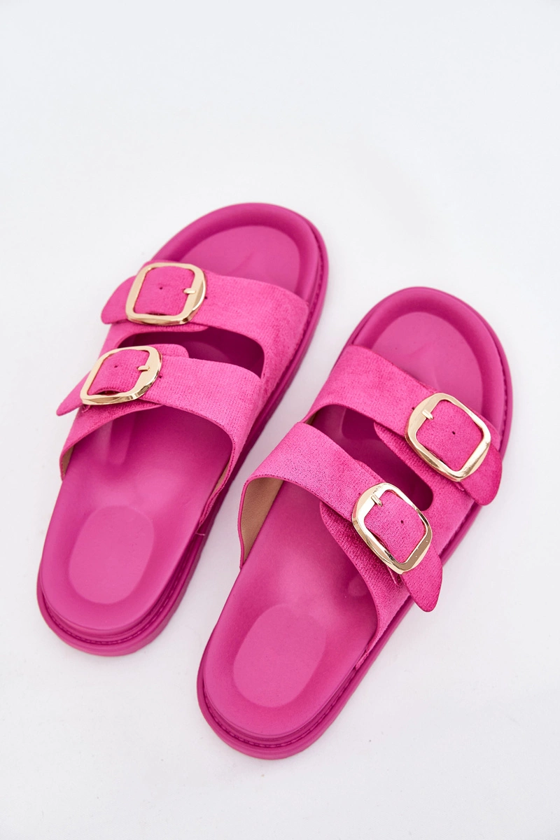 Klapki Damskie Na Platformie Ze Złotymi Klamrami Fuksja Verena