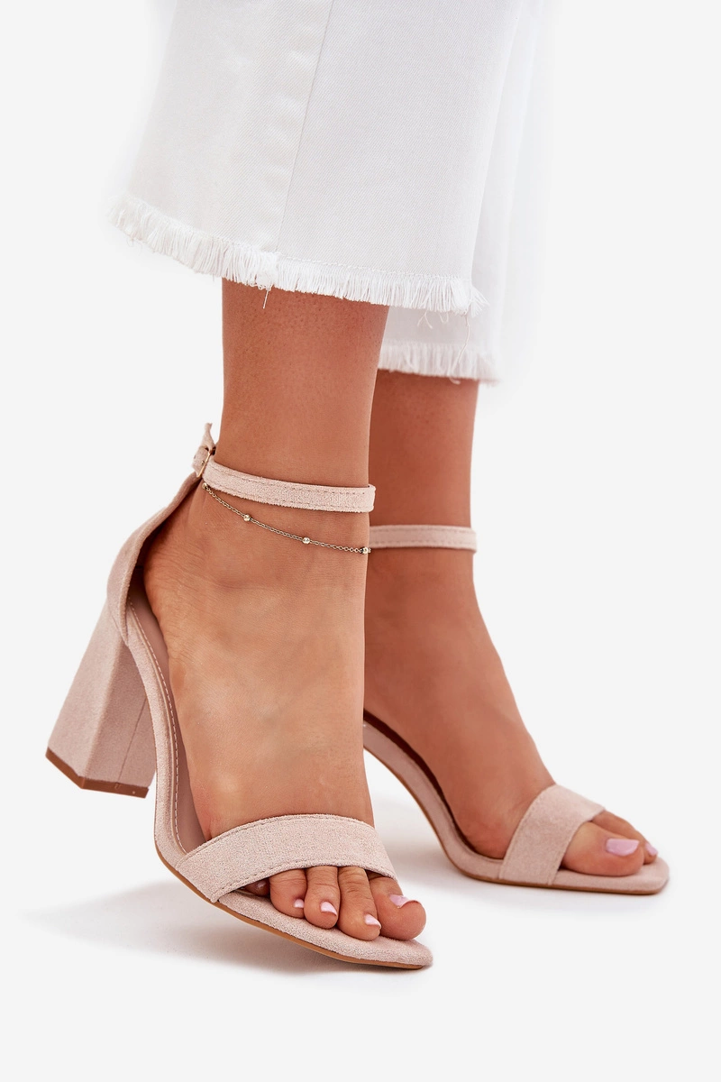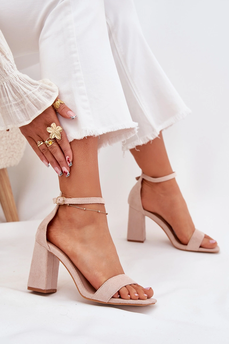 Sandały Damskie Na Słupku Z Eko Zamszu Beżowe Elirae
