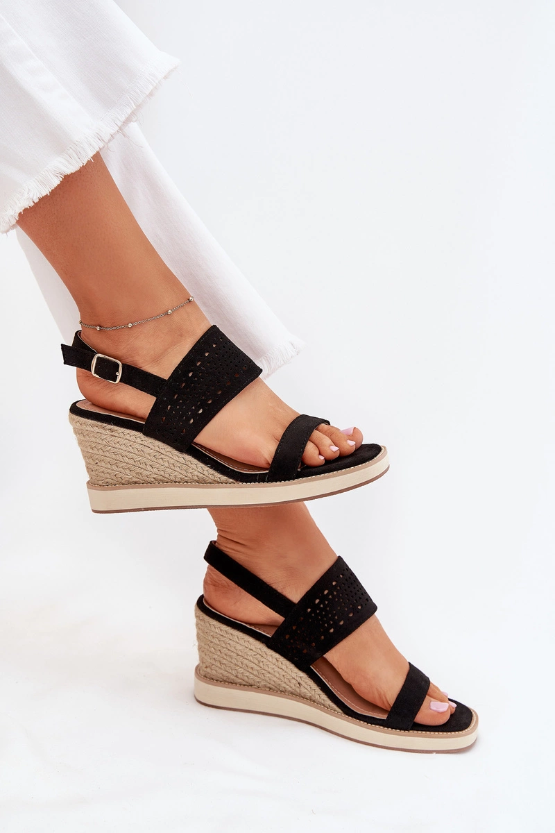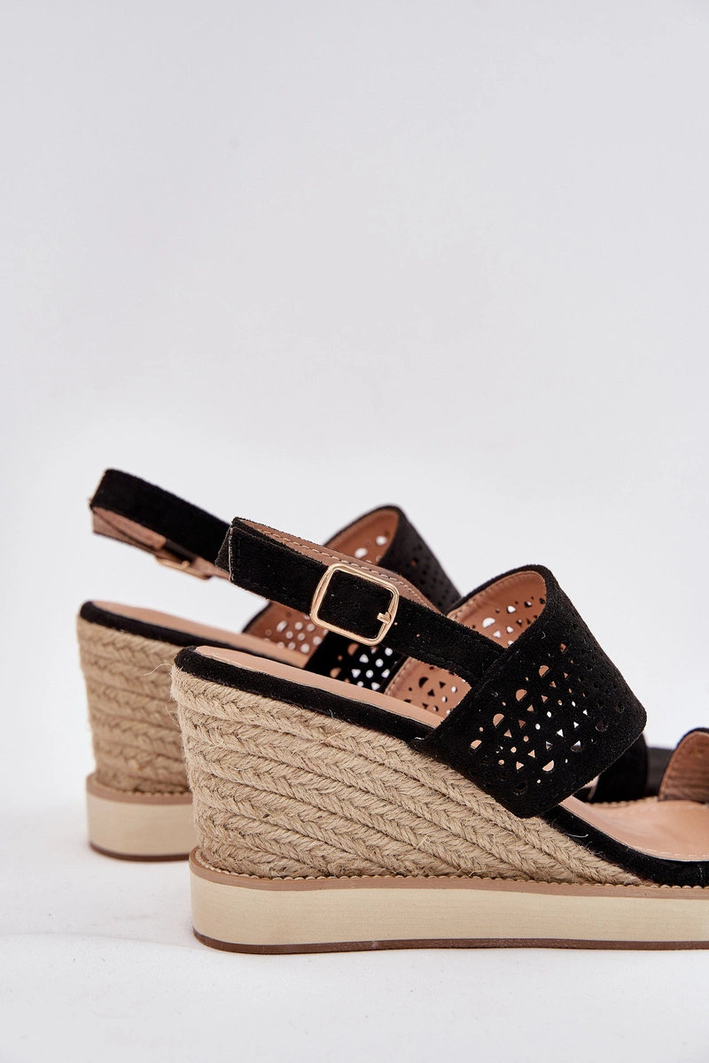 Sandały Damskie Ażurowe Na Koturnie Z Plecionką Czarne Zolira
