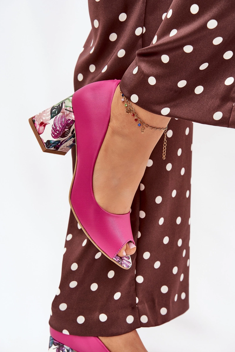 Skórzane Czółenka Z Ozdobnym Obcasem Lewski Shoes 2608/K Fuksja