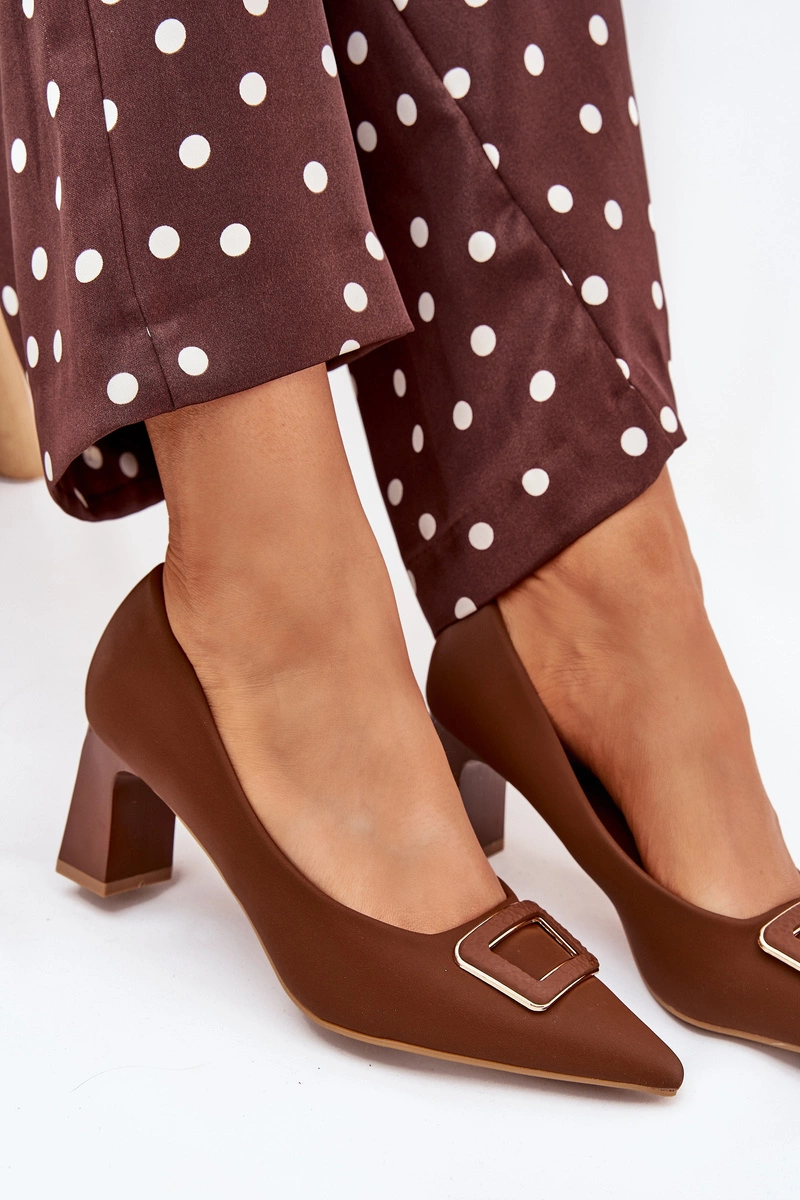 Czółenka Na Słupku Z Ozdobną Klamrą Brązowe Seriva