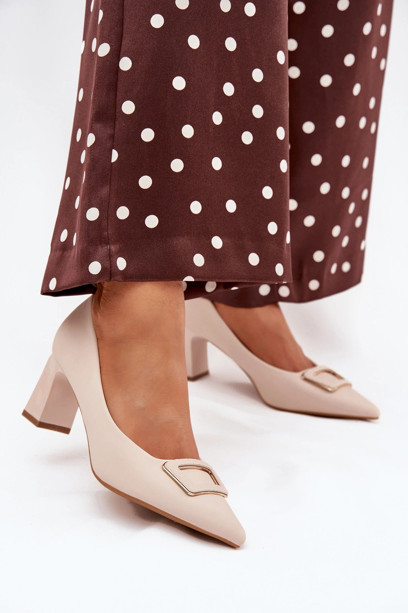 Czółenka Na Słupku Z Ozdobną Klamrą Beżowe Seriva