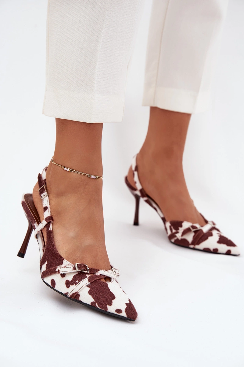 Czółenka Z Odkrytą Piętą I Paseczkami Łaty Biało-Brązowe Ravira