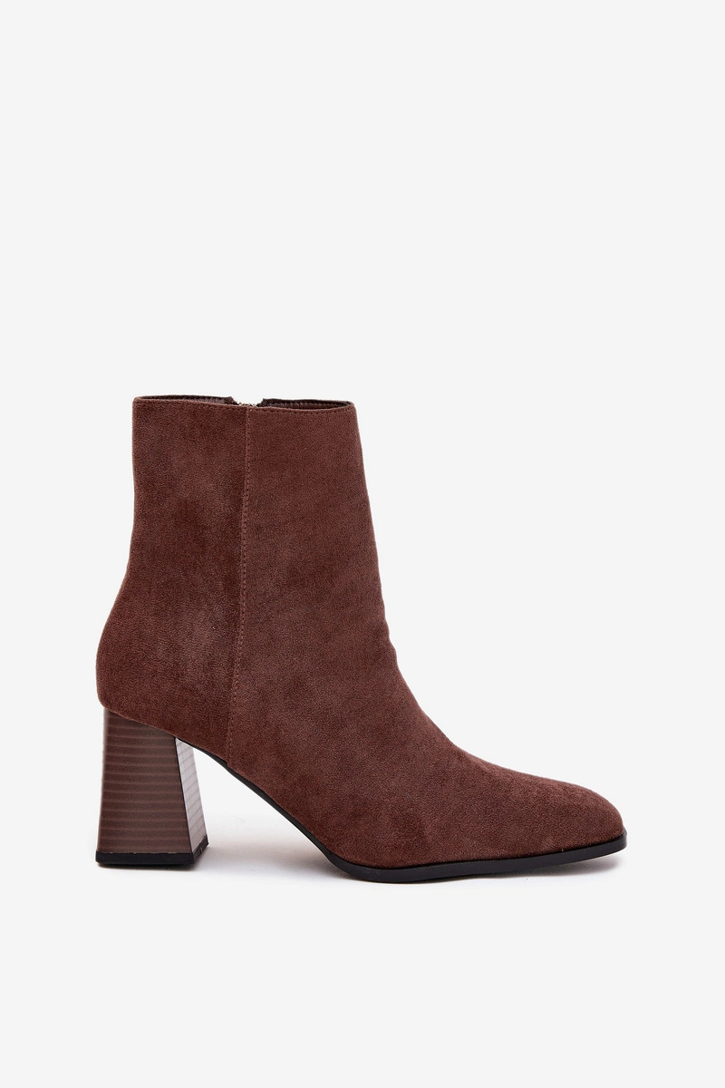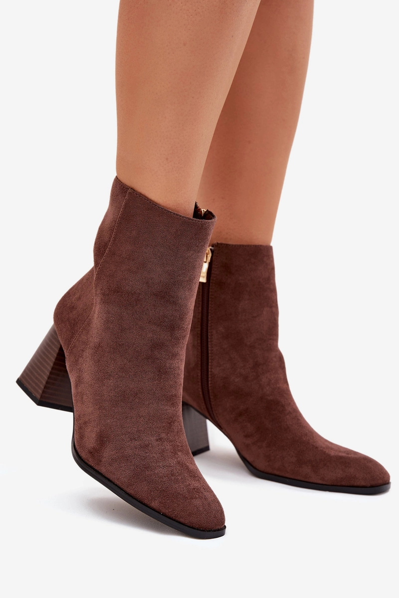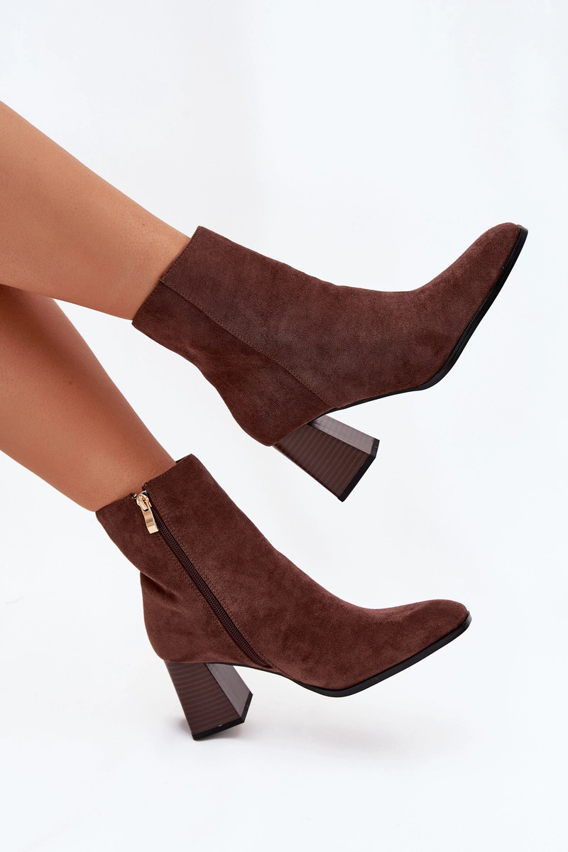 Botki Damskie Z Eko Zamszu Na Słupku Zamek Brązowe Zelita