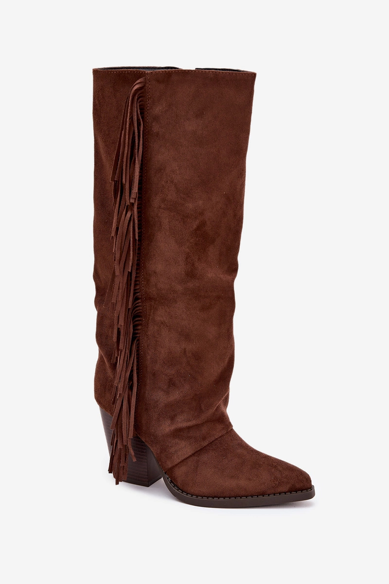 Kozaki Kowbojki Damskie Z Frędzlami Na Słupku Brązowe Tivara
