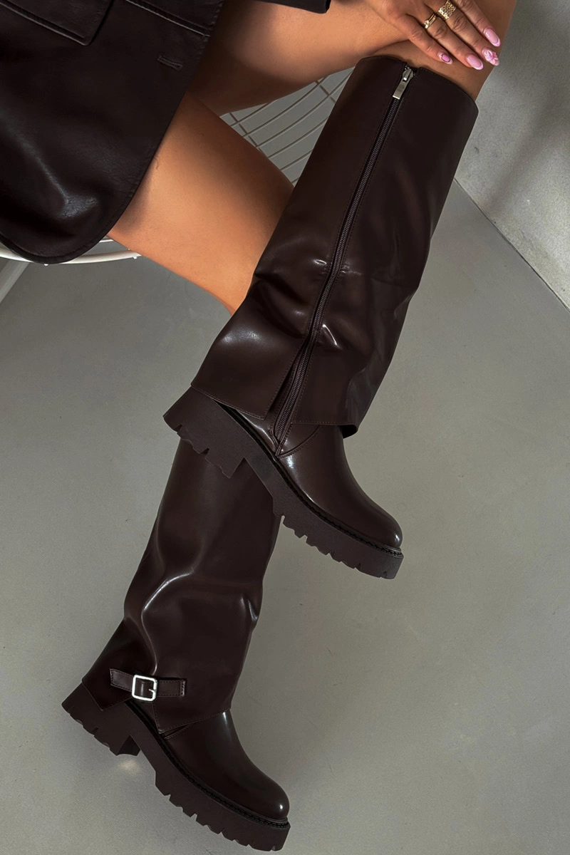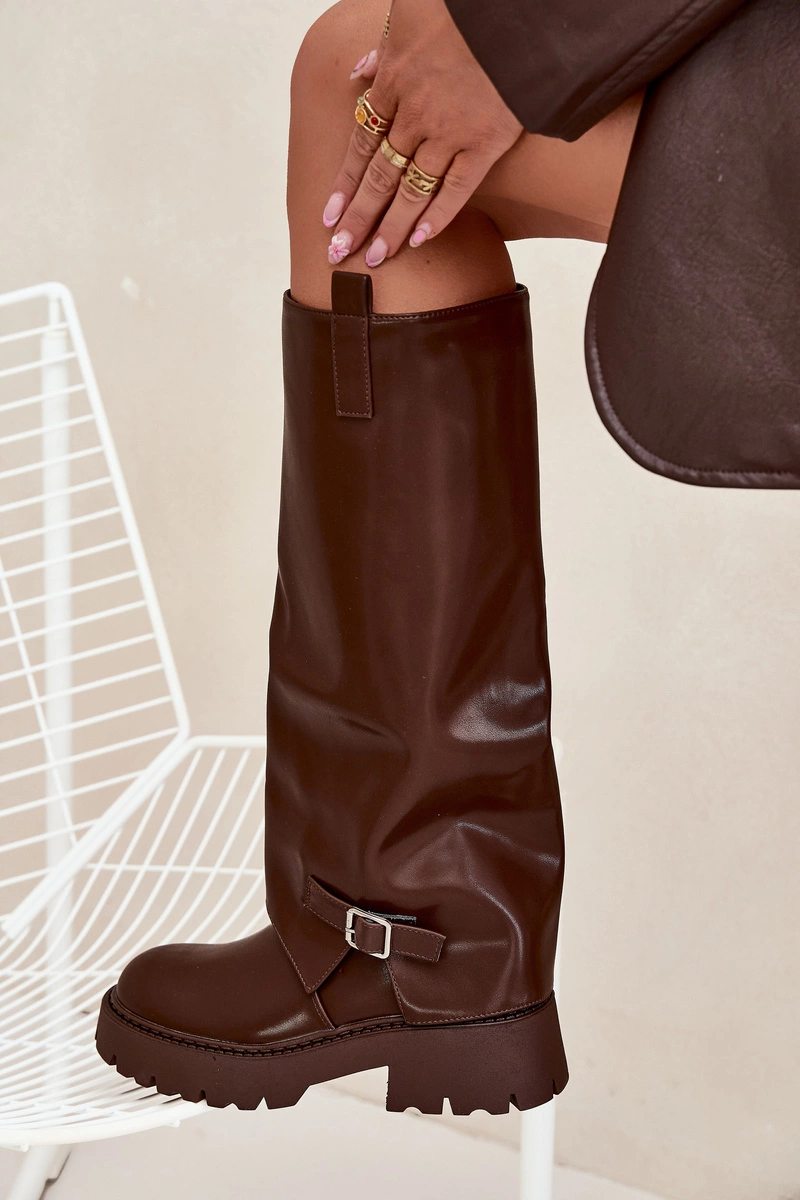Ocieplane Kozaki Z Wywiniętą Cholewką I Klamrą Czekoladowe Fiorae
