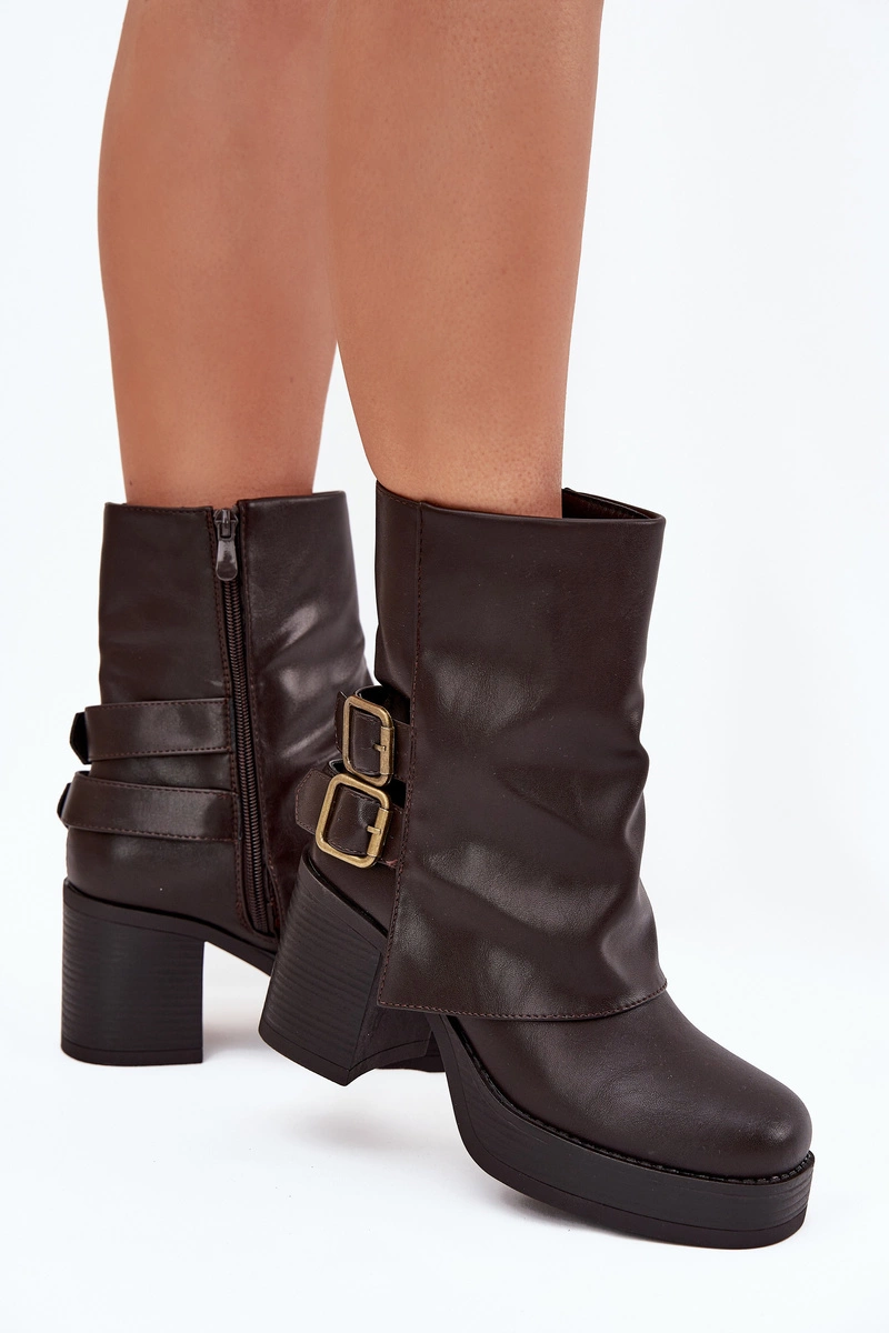 Botki Damskie Na Słupku Z Klamrami Czekoladowe Marena