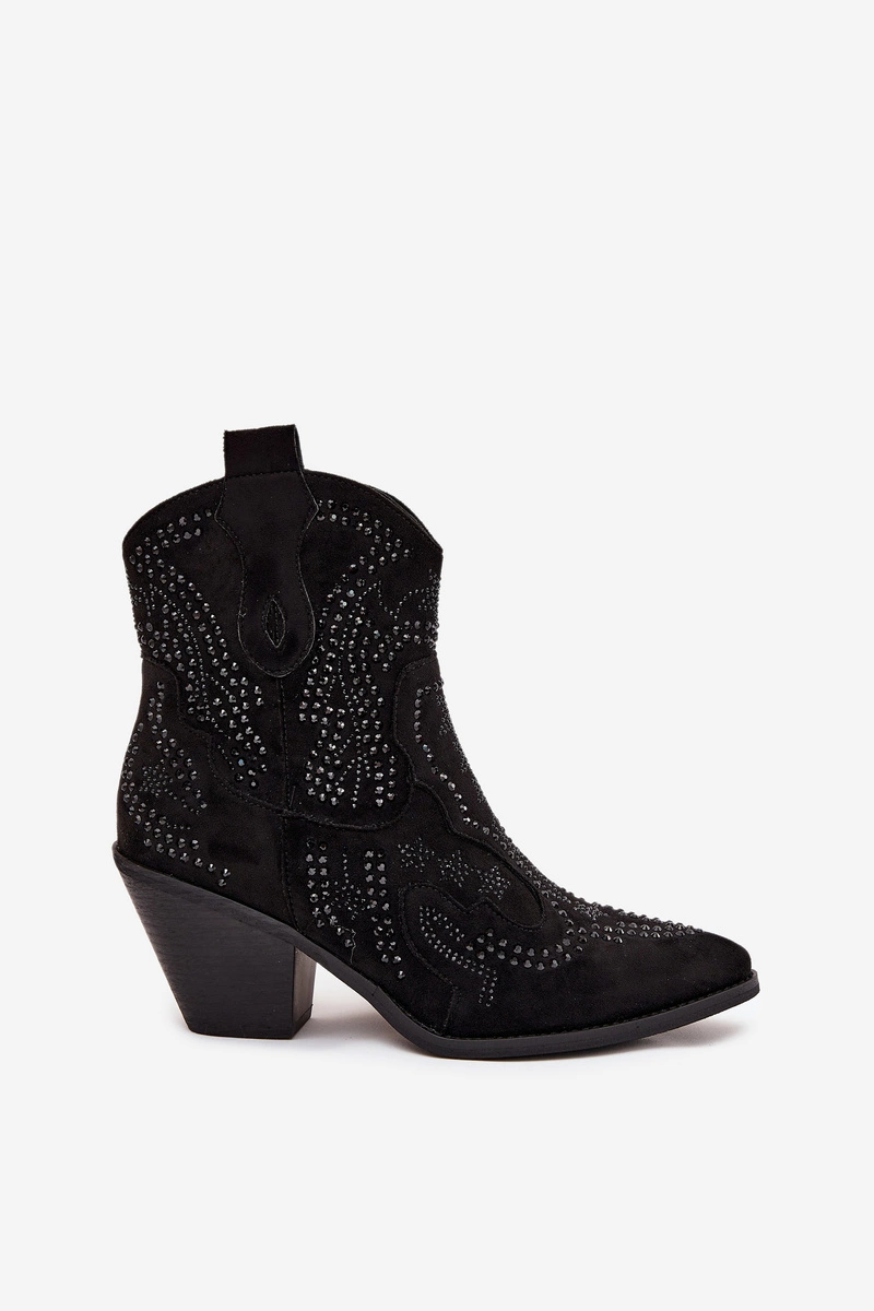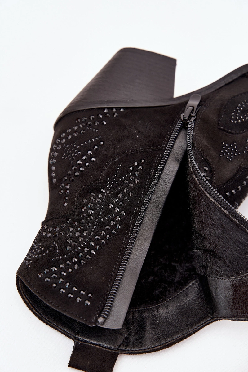 Ocieplane Damskie Botki Kowbojki Ze Zdobieniem Czarne Lelira
