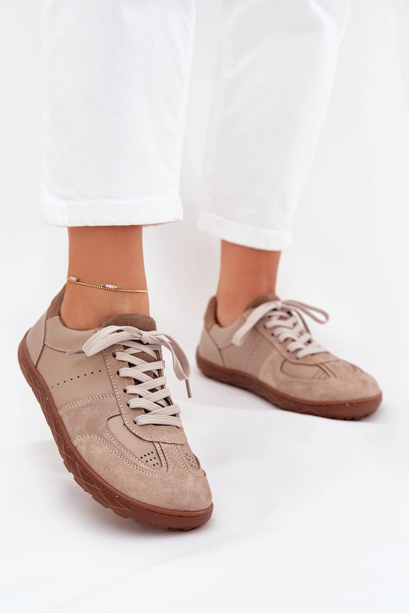 Skórzane Damskie Trampki Barefoot Zazoo N1277S2 Beżowe