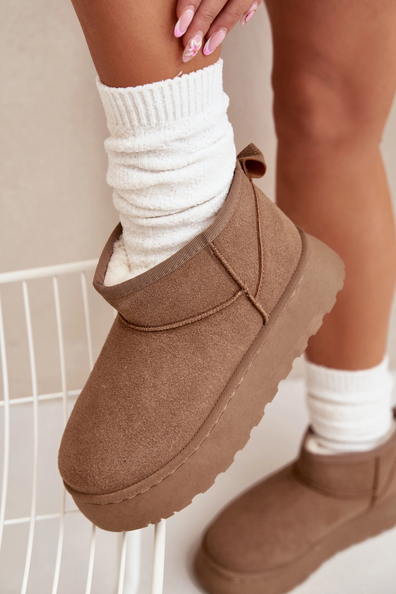 Śniegowce Damskie Na Platformie Ocieplane Futerkiem Khaki Vesirae