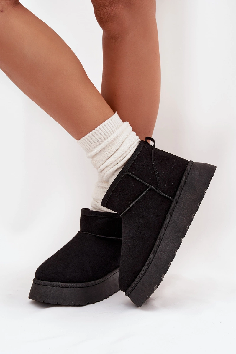 Śniegowce Damskie Na Platformie Ocieplane Futerkiem Czarne Vesirae