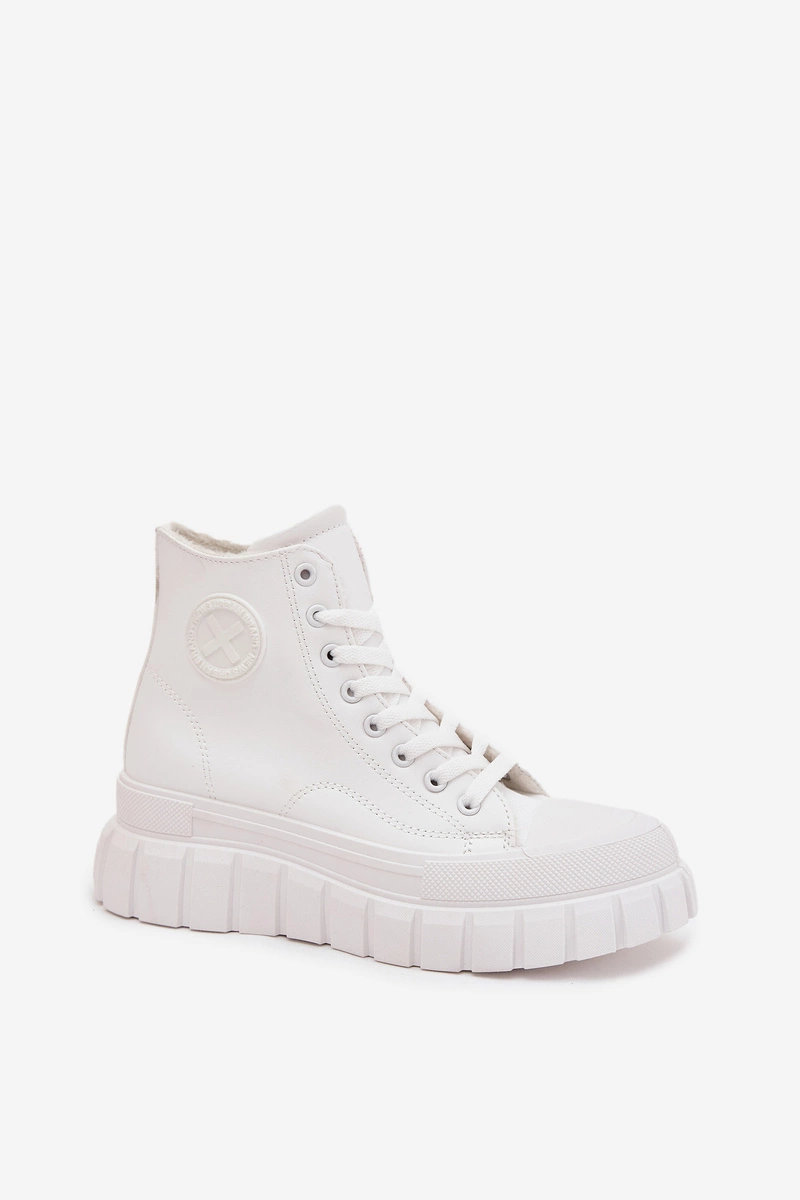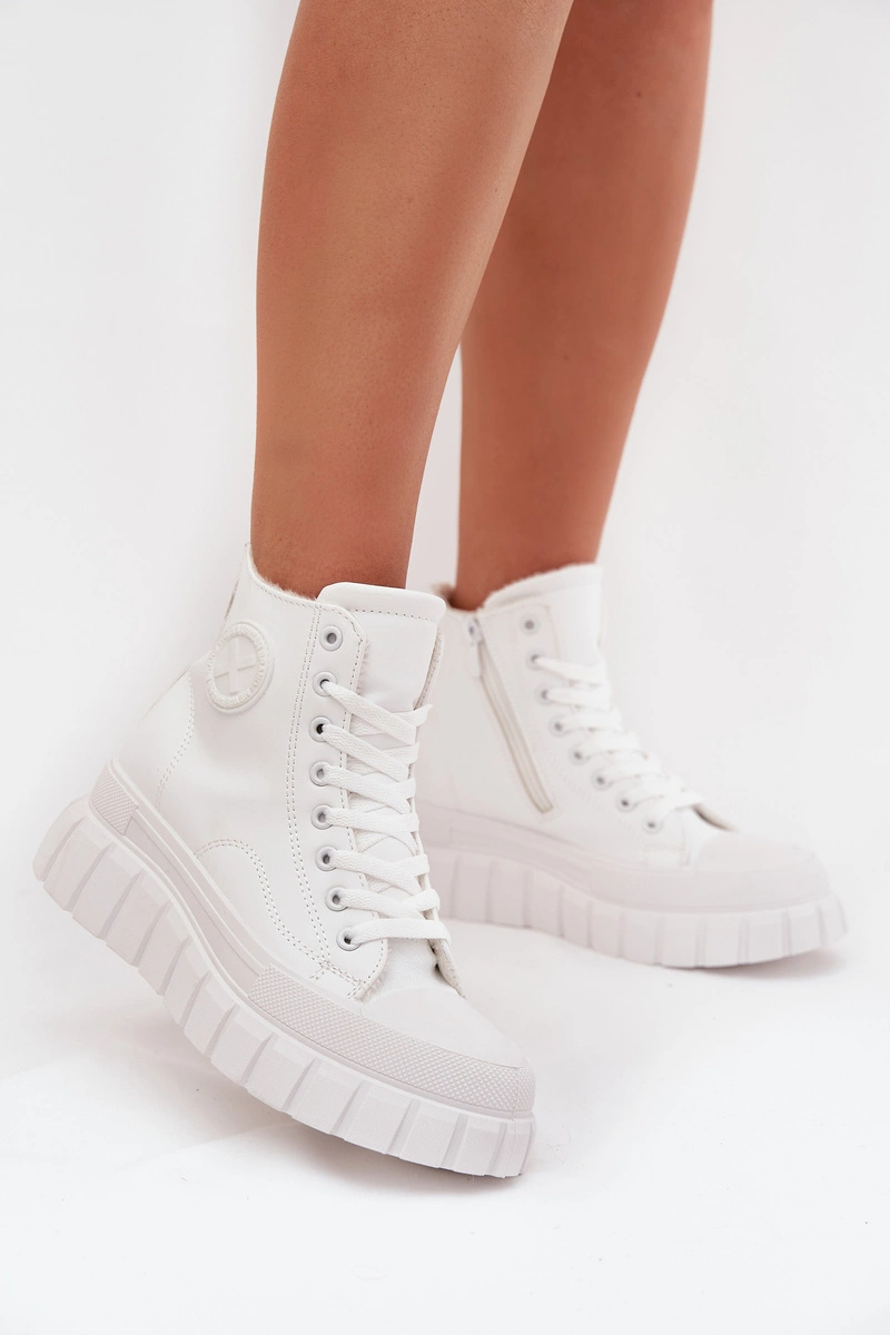 Ocieplane Wysokie Trampki Damskie Na Platformie Zamek Białe Sarira