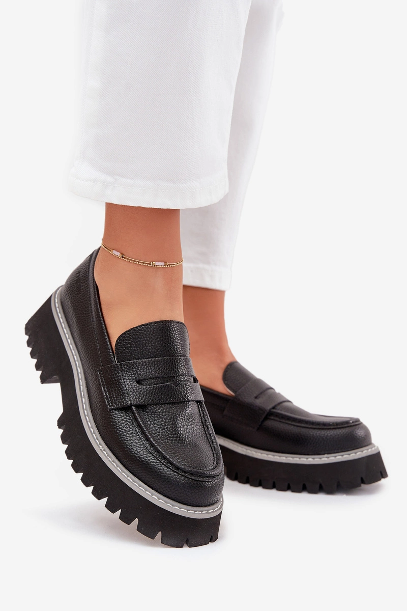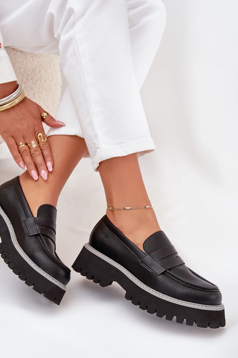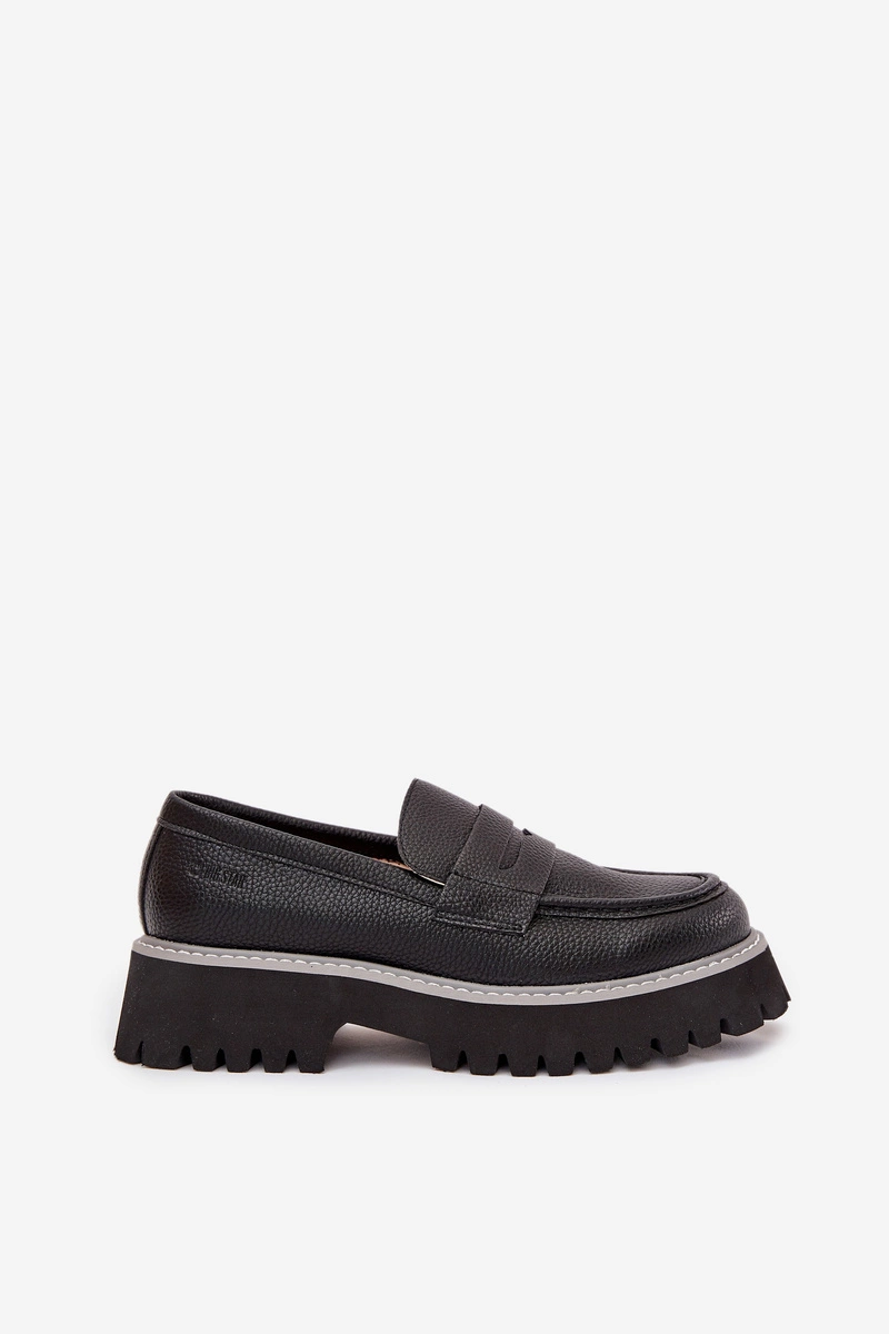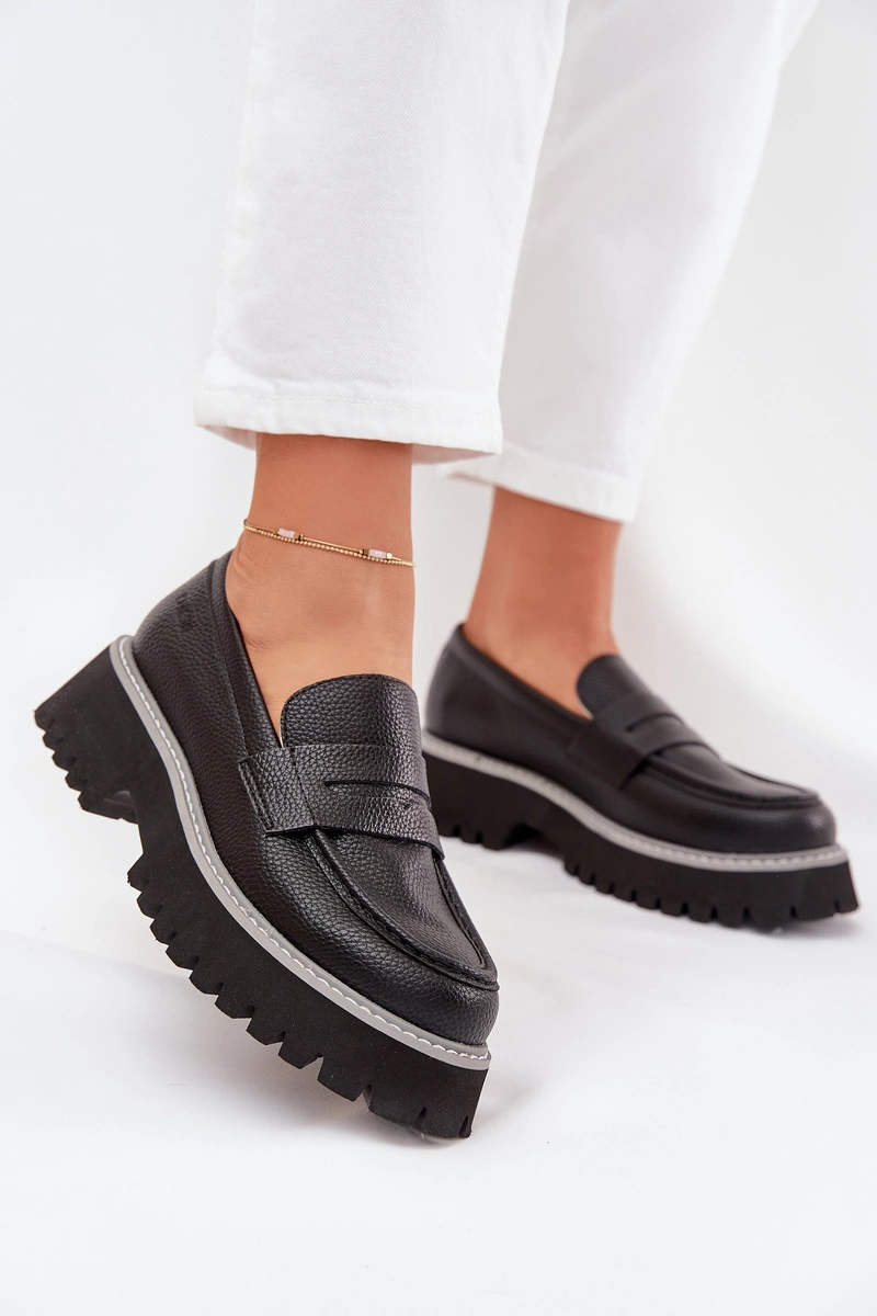 Mokasyny Damskie Na Platformie I Płaskim Obcasie Big Star NN274049 Czarne