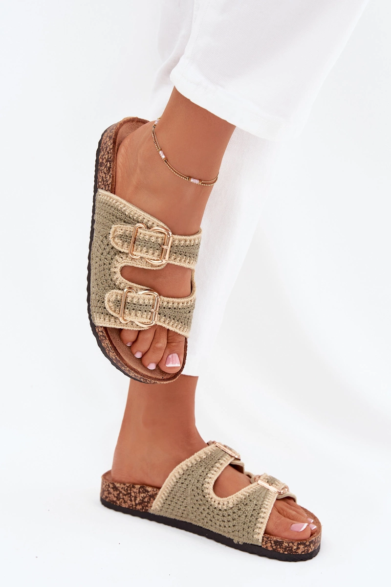 Szydełkowe klapki damskie na korkowej platformie to wyjątkowa propozycja na ciepłe dni. Dzięki profilowanej wkładce z eko zamszu zapewniają komfort i wygodę przez cały dzień. Dwie złote klamry dodają im eleganckiego charakteru. Idealne do letnich stylizacji, te klapki będą doskonałym wyborem do sukienek, spódnic i spodni. Przy wyborze rozmiaru prosimy sugerować się tabelą rozmiarów.