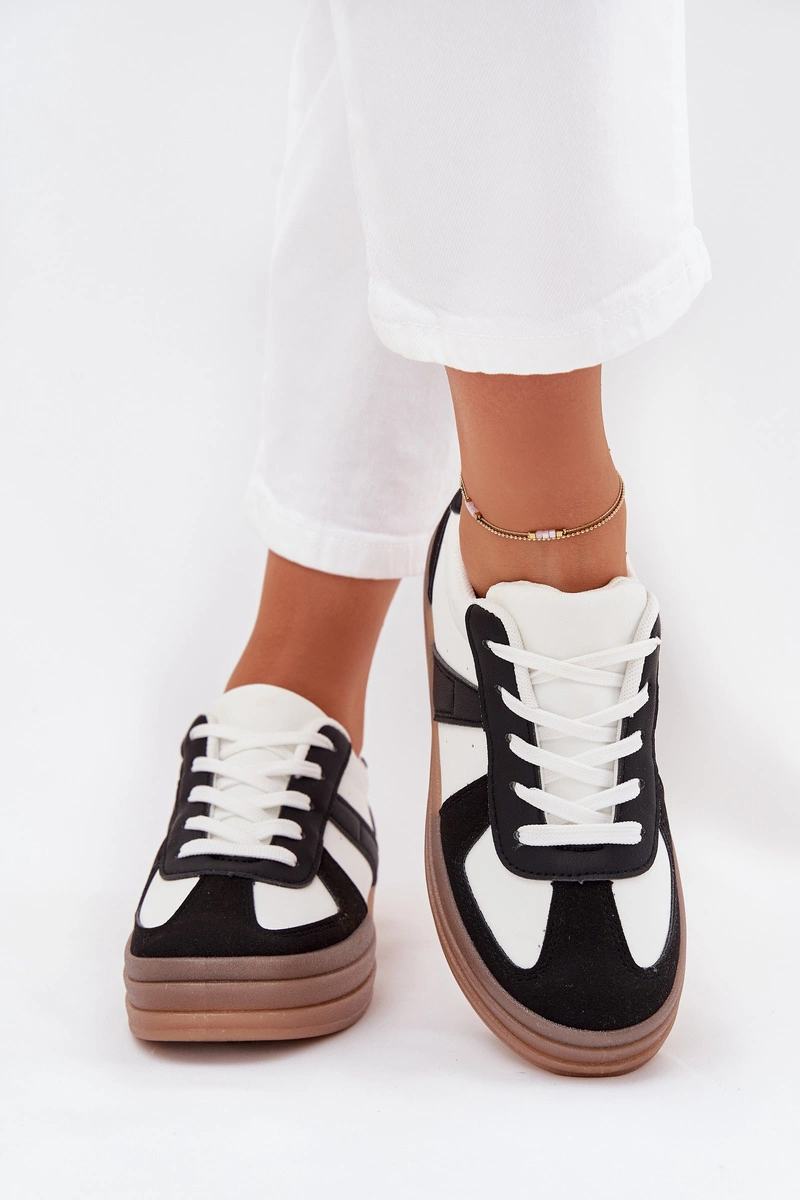 Sneakesy Damskie Na Platformie Biało-Czarne Sivirae
