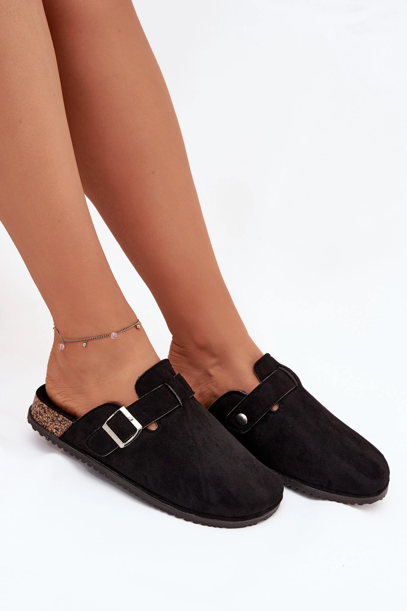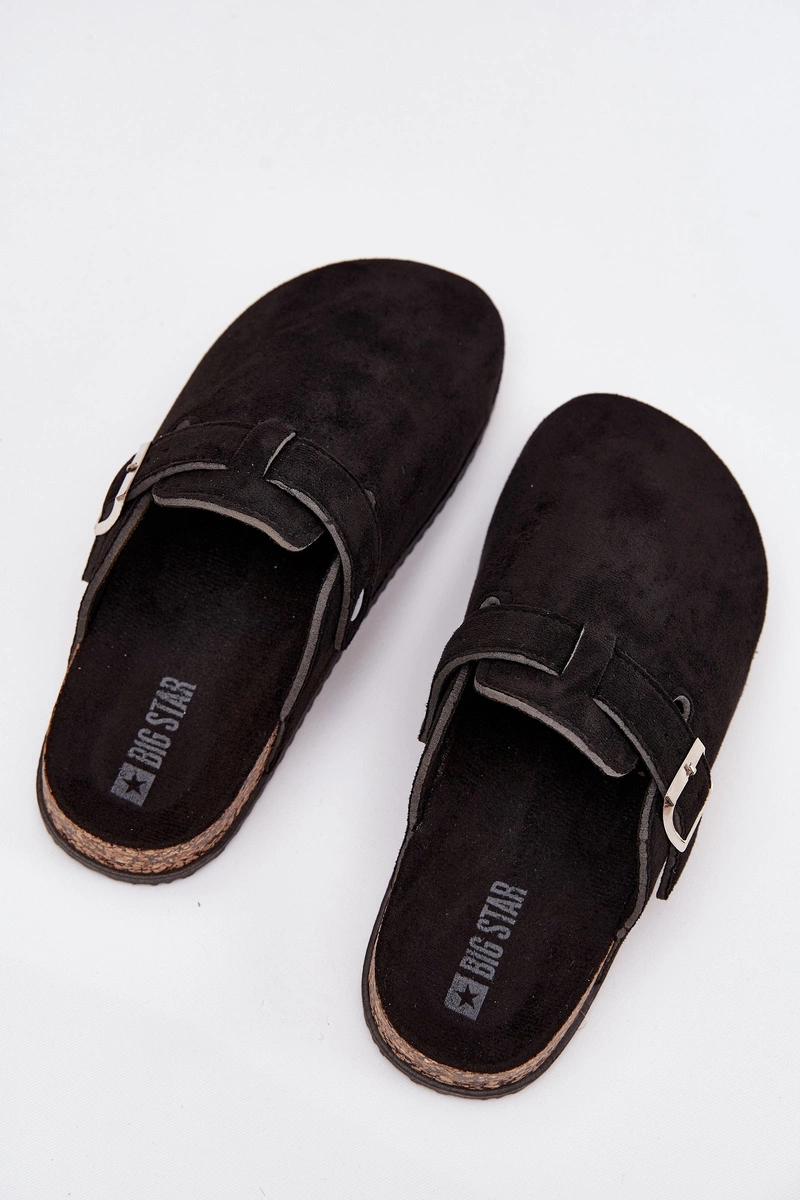 Klapki Chodaki Damskie Na Korkowej Platformie Srebrna Klamra Big Star SS274736 Czarne