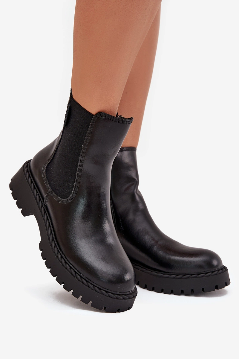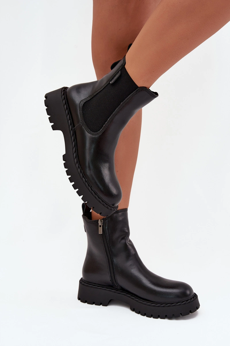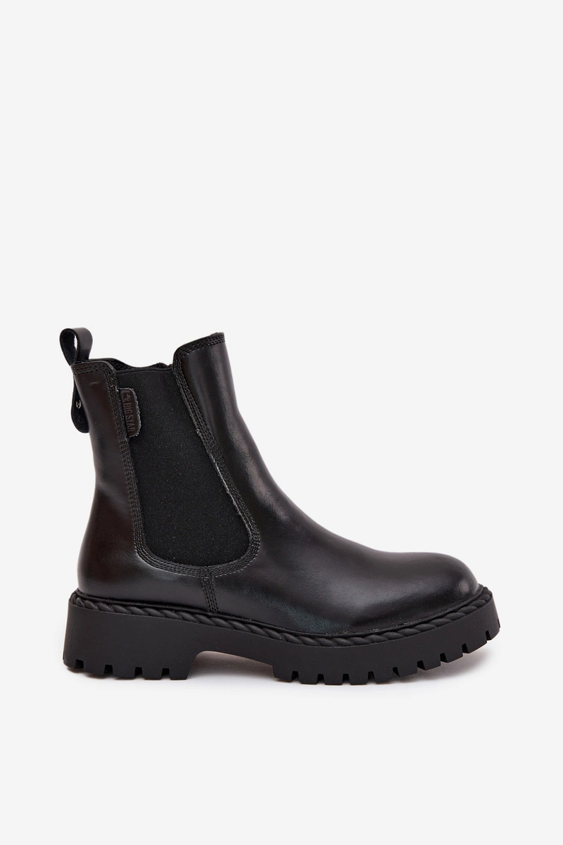 Skórzane Botki Sztyblety Damskie Ocieplane Na Zamek Big Star OO274109 Czarne