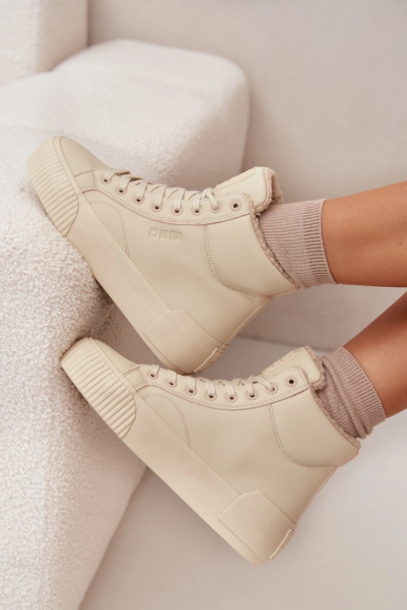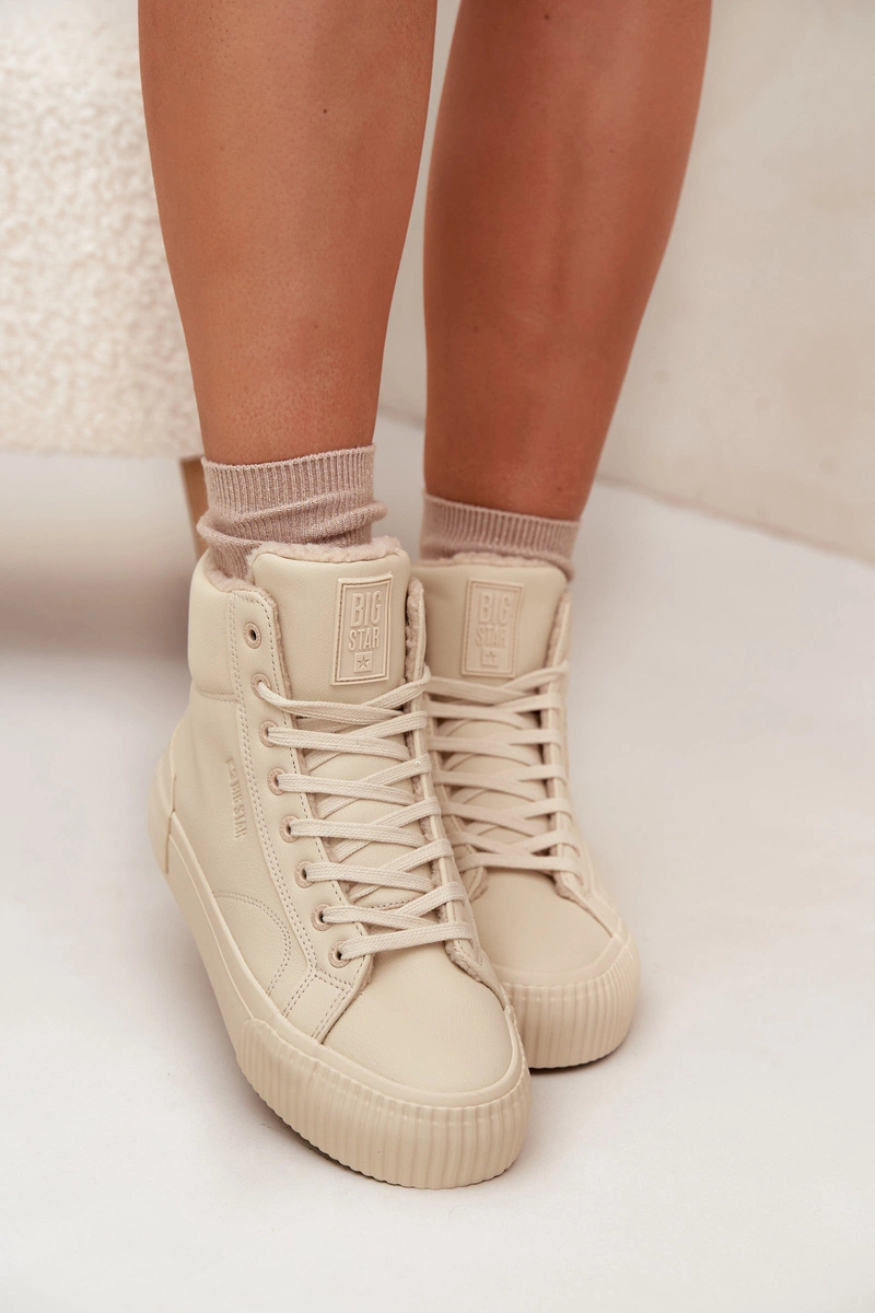 Ocieplane Trampki Damskie Na Platformie Big Star OO274795 Beżowe