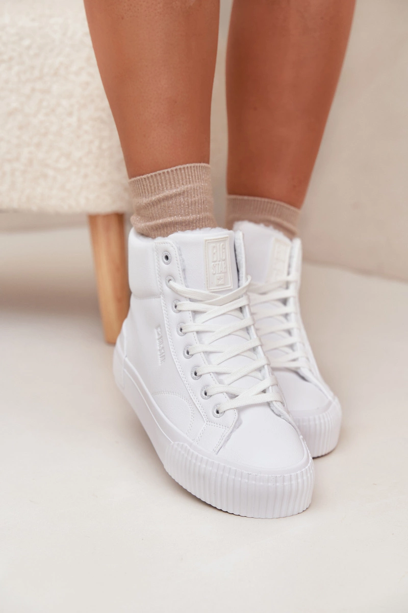 Ocieplane Trampki Damskie Na Platformie Big Star OO274794 Białe