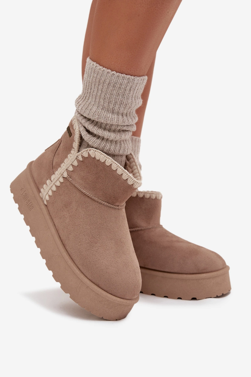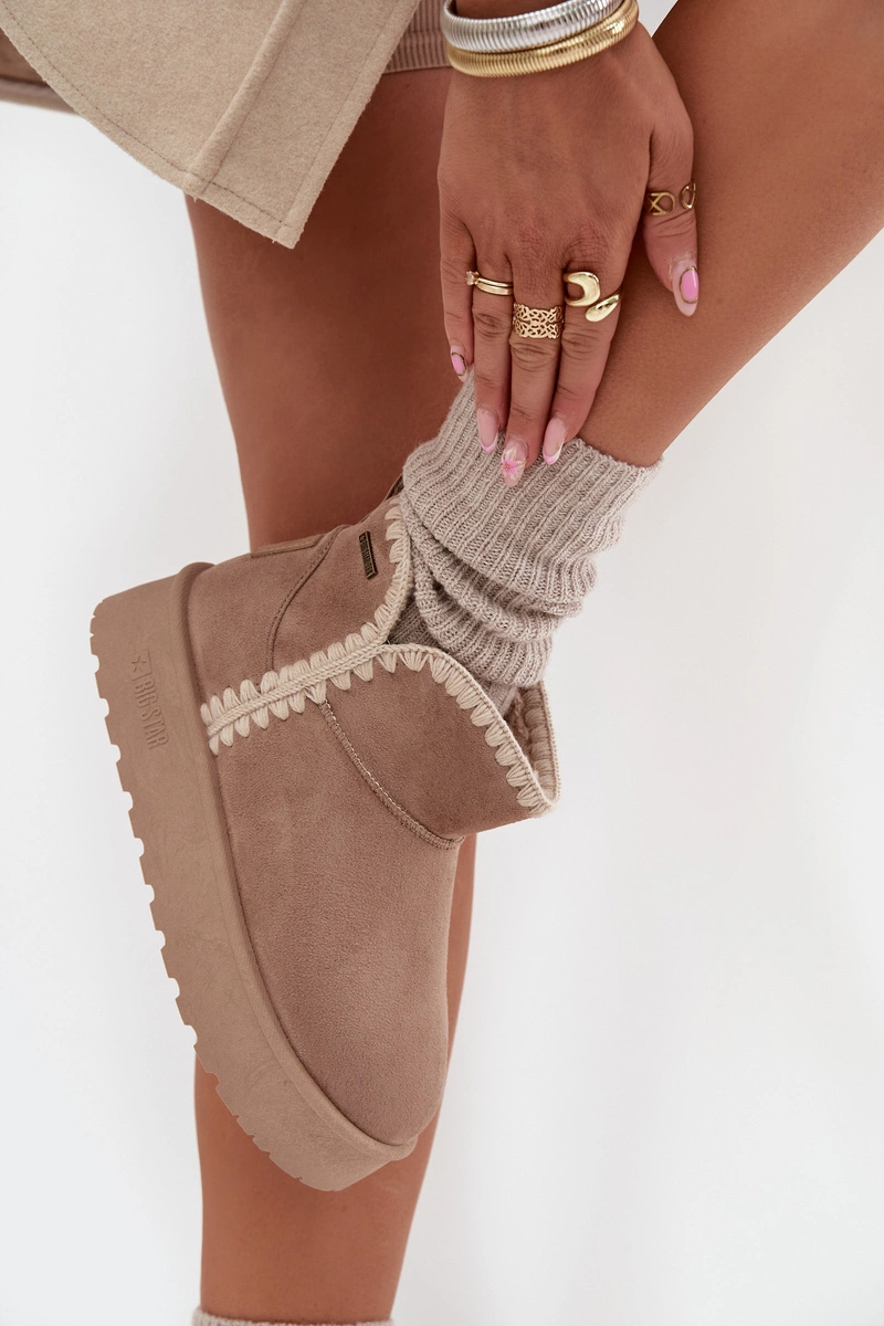 Śniegowce Damskie Na Platformie Z Przeszyciami Big Star SS274129 Beżowe