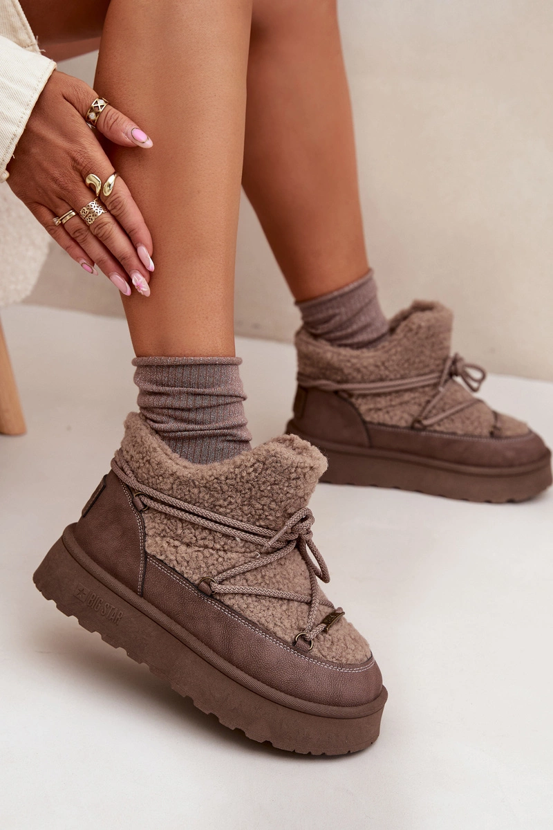 Śniegowce Damskie Na Platformie Z Futerkiem Typu Baranek Big Star SS274112 Brązowe
