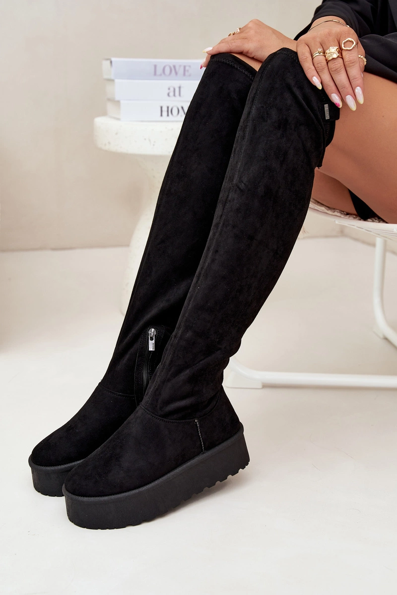 Kozaki Damskie Na Platformie Za Kolano Big Star SS274264 Czarne