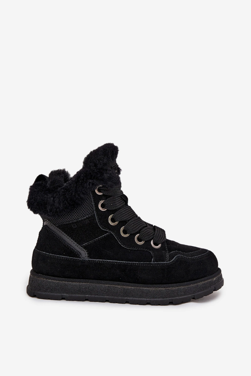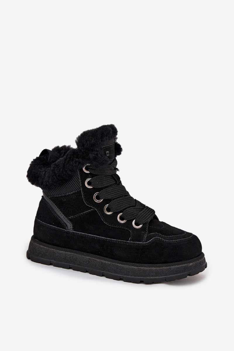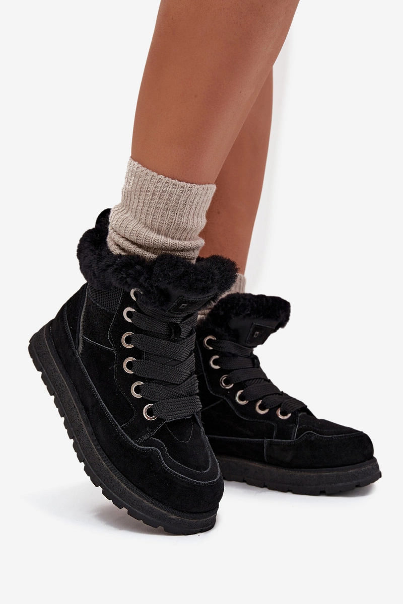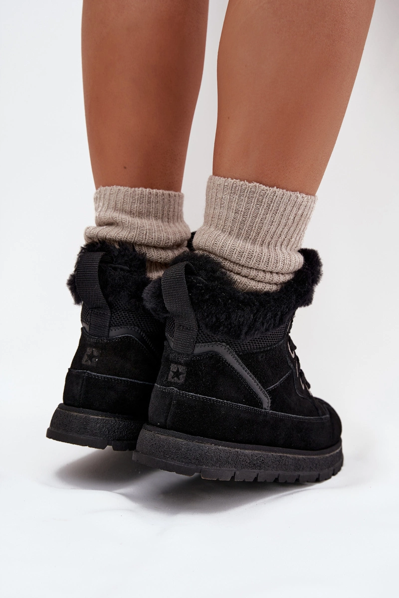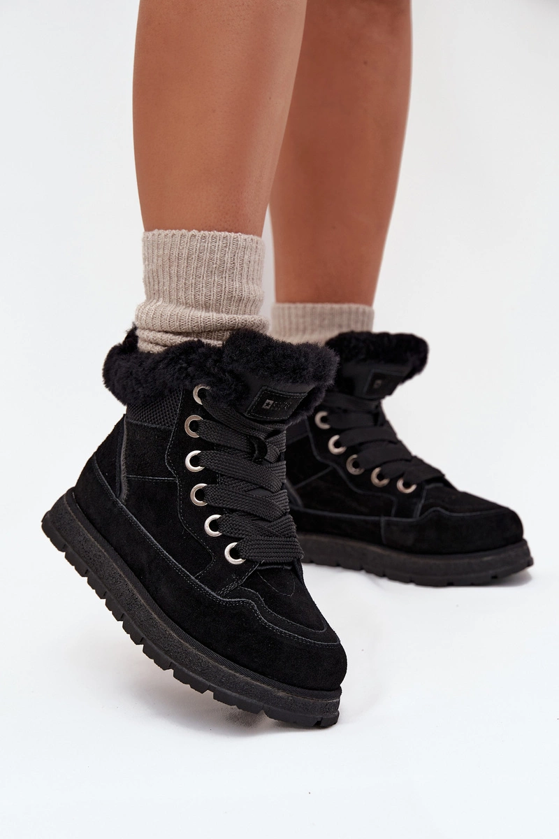 Zamszowe Śniegowce Trapery Damskie Na Platformie Z Futerkiem Big Star SS274369 Czarne