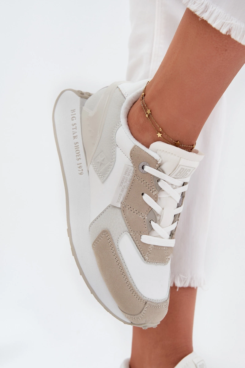 Skórzane Sneakersy Damskie Big Star OO274563 Hi-Poly System Białe