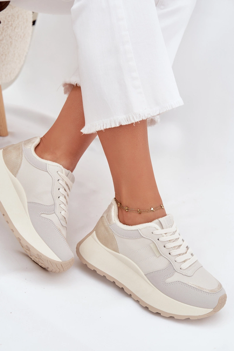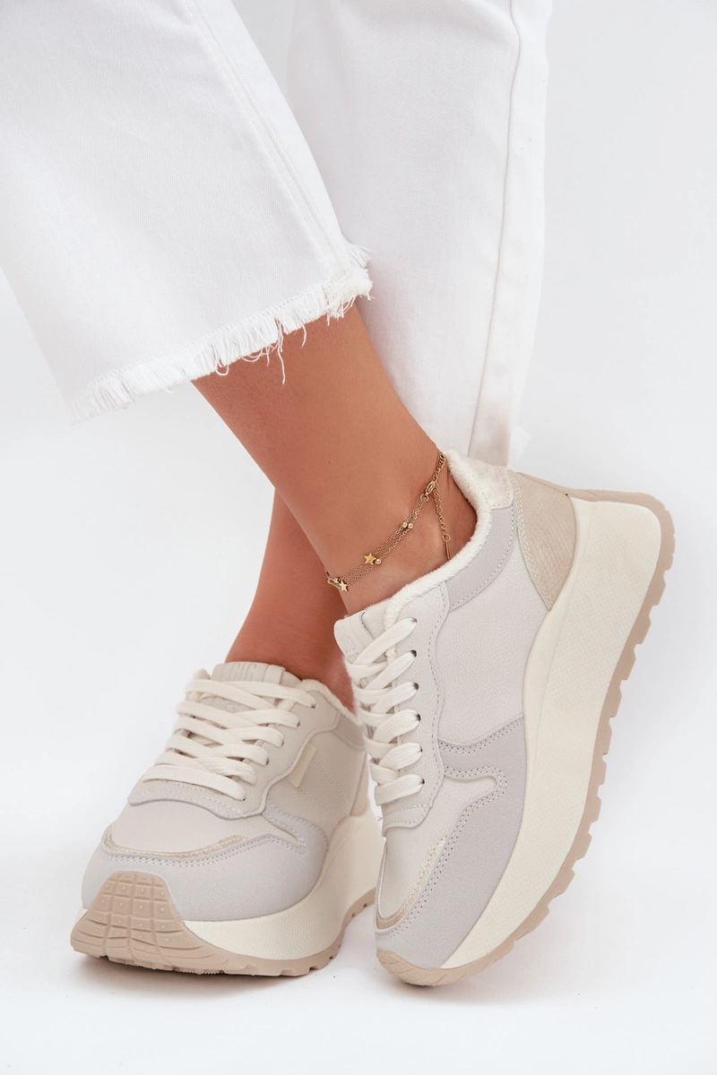 Ocieplane Sneakersy Damskie Na Platformie Big Star SS274008 HI-POLY SYSTEM Jasnobeżowe