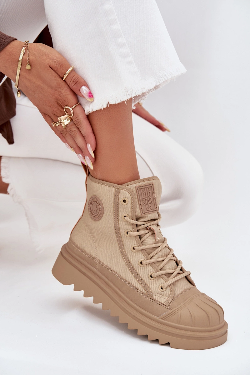 Wysokie Trampki Damskie Ocieplane Big Star OO274A356 Beżowe