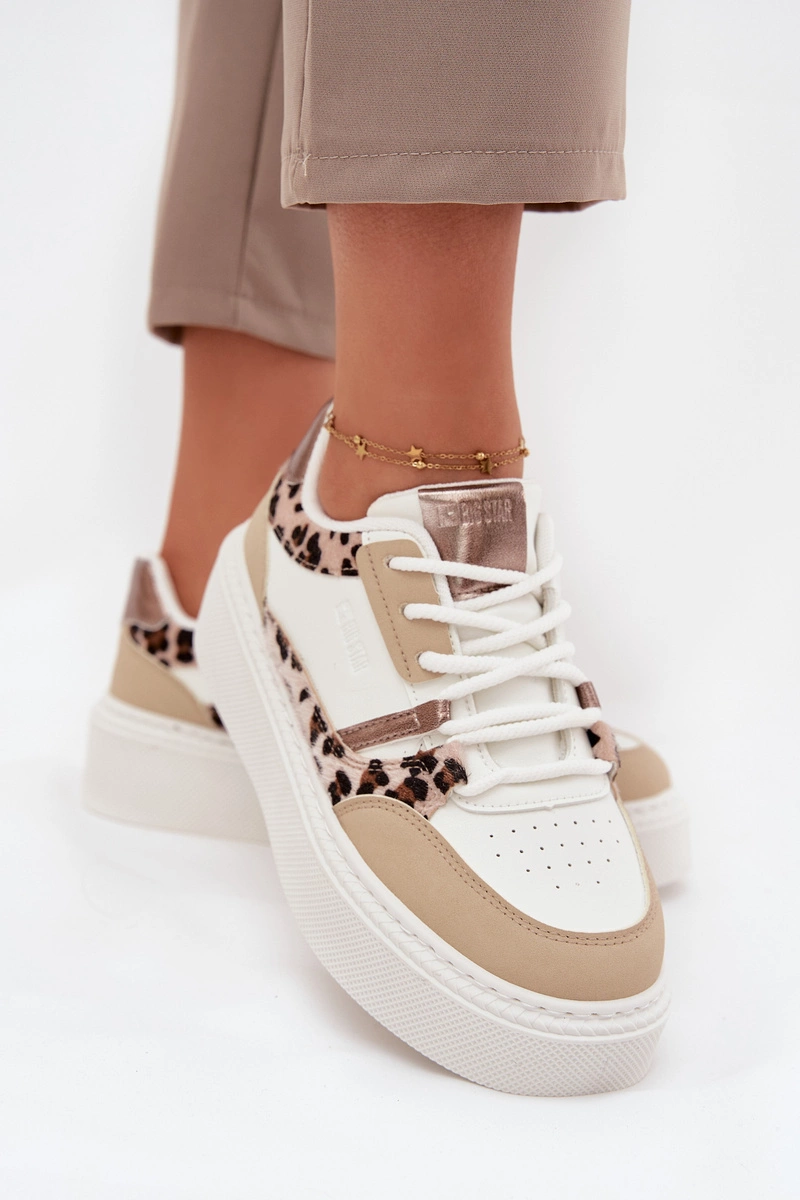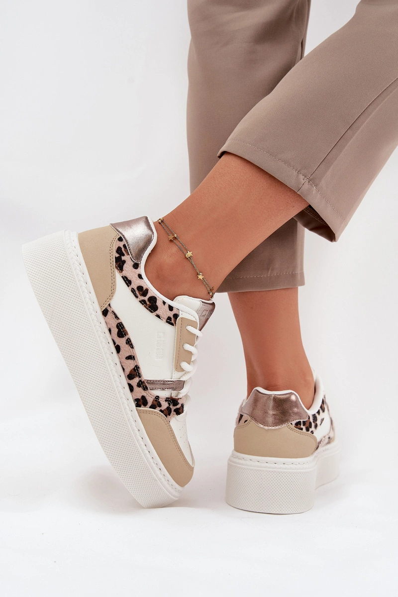 Damskie Sneakersy Na Platformie Big Star SS274357 Panterka Biało-Beżowe