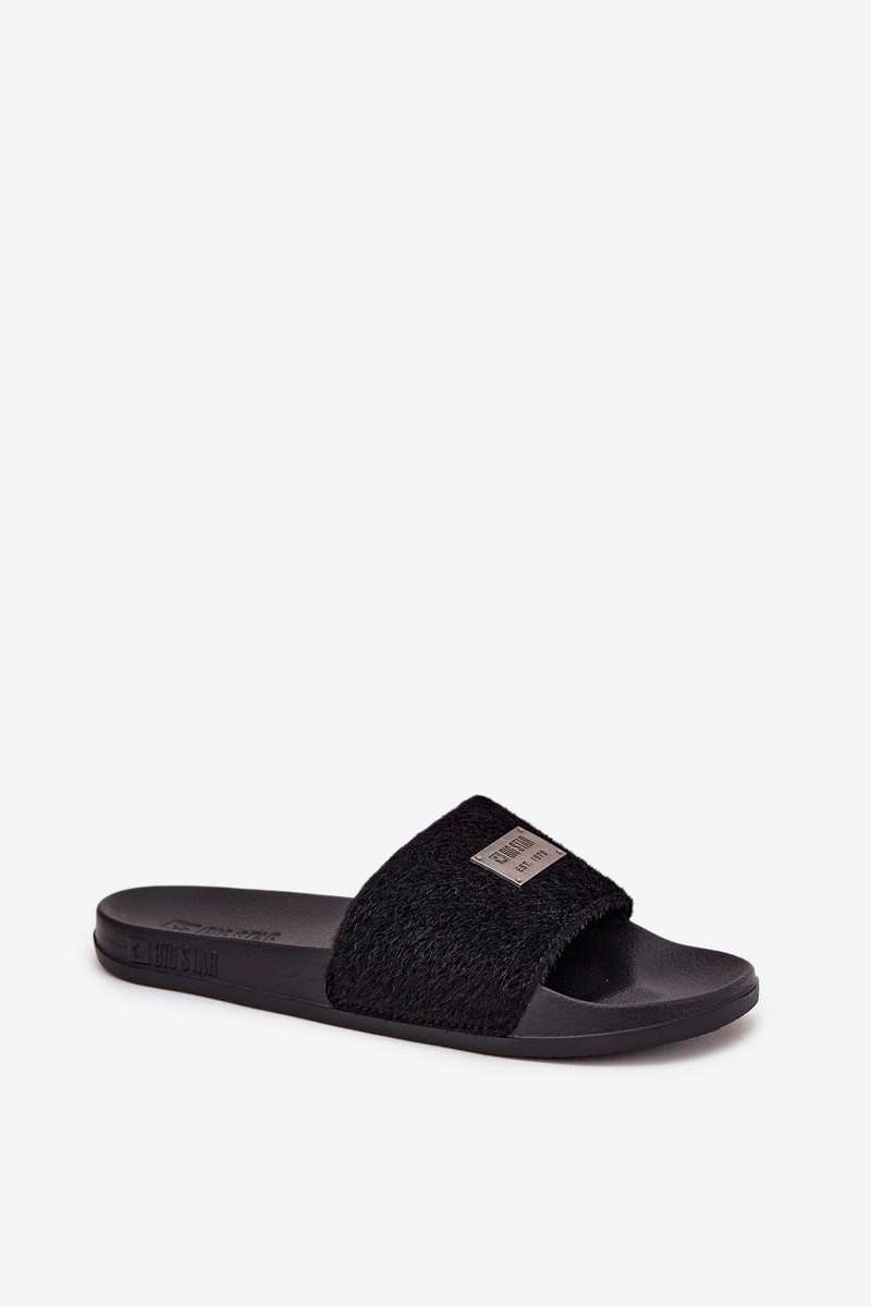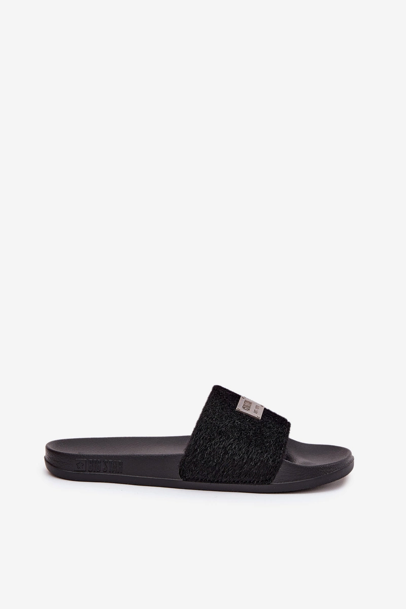 Klapki Damskie Na Piankowej Podeszwie Z Futerkiem Big Star SS274716 Czarne