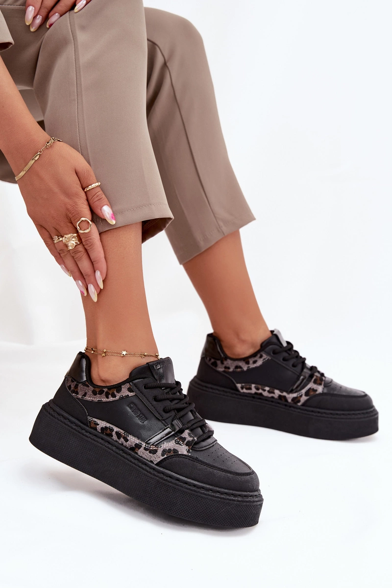 Damskie Sneakersy Na Platformie Big Star SS274358 Panterka Czarne