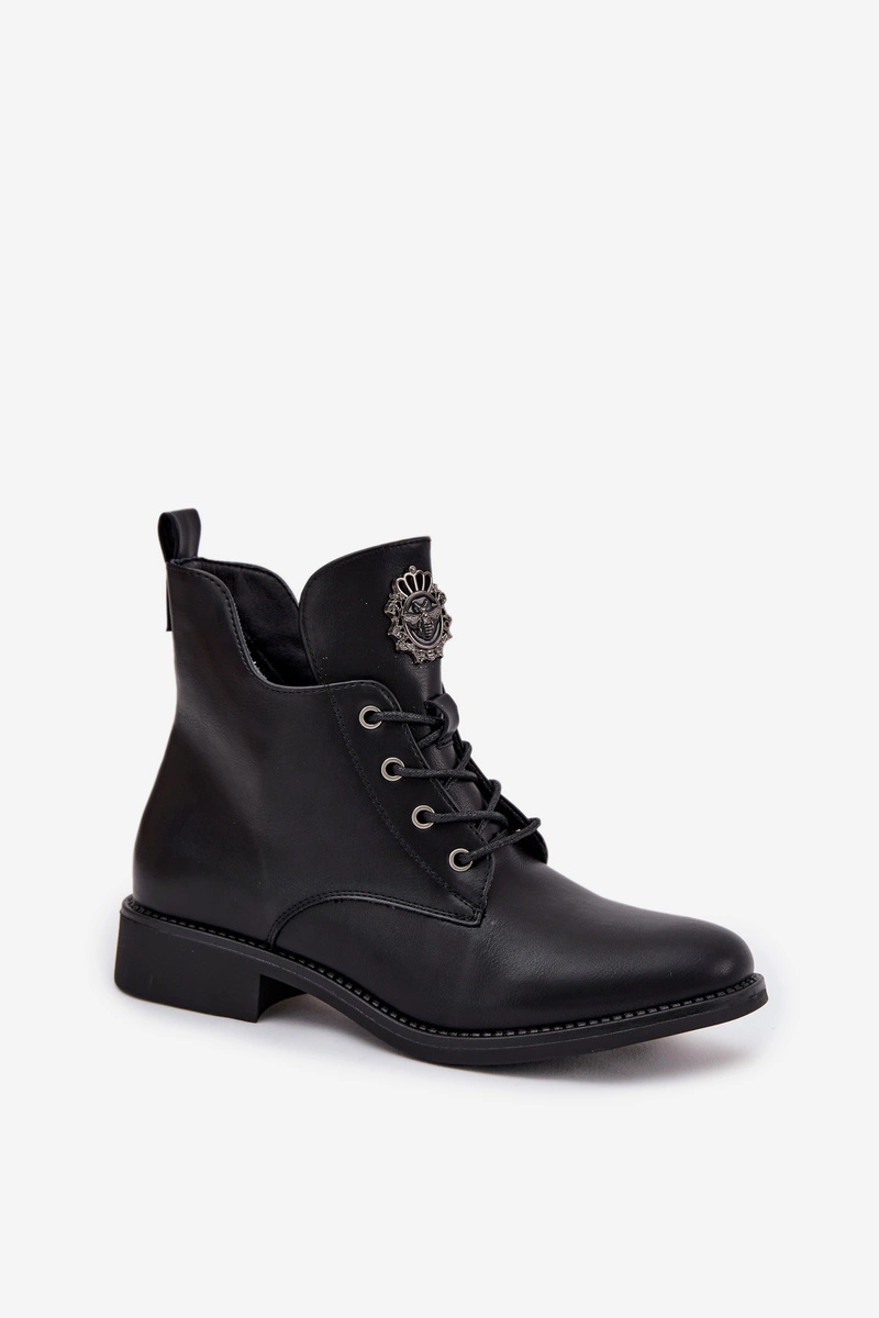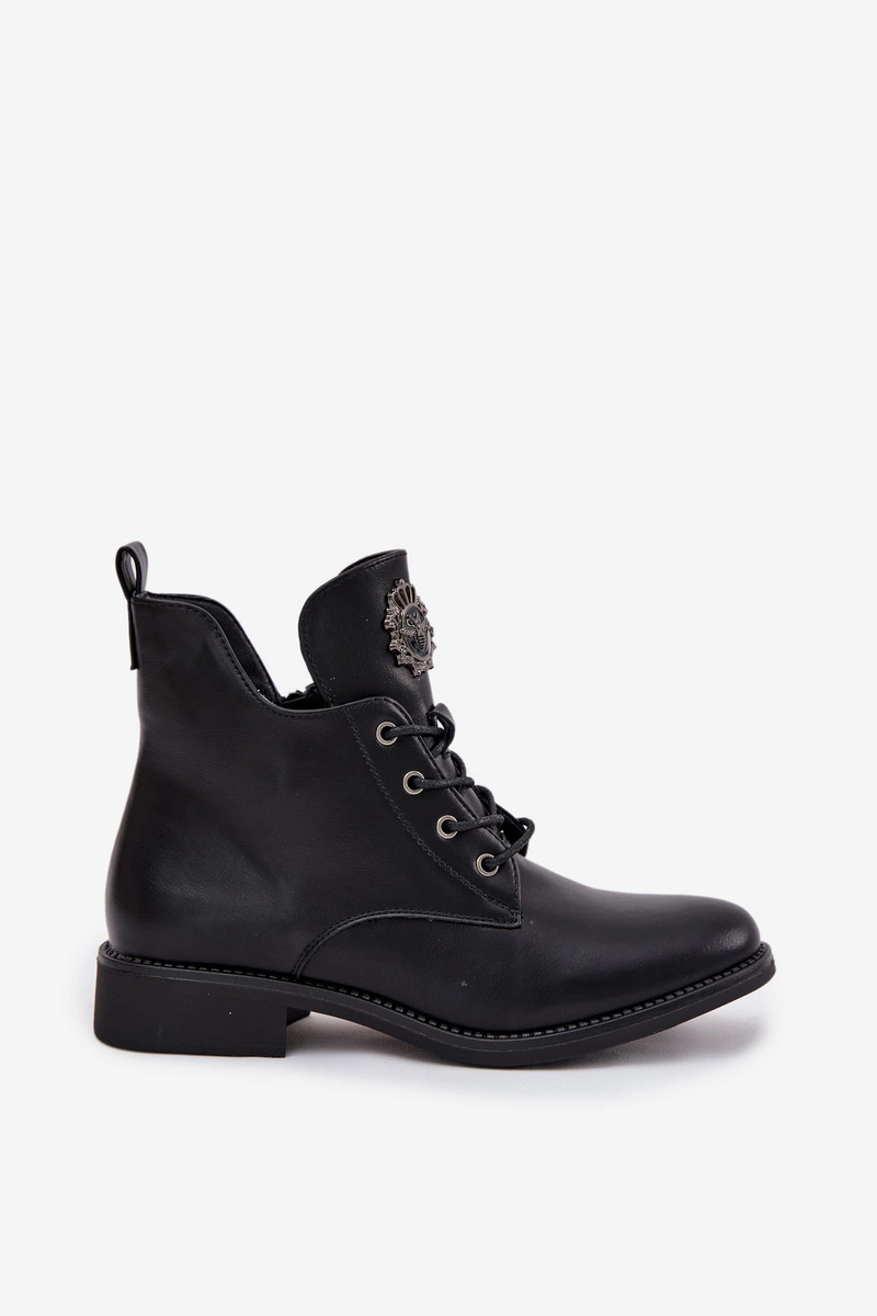 Niskie Botki Damskie Na Płaskim Obcasie Z Ozdobnym Detalem Ocieplane Czarne Cylira