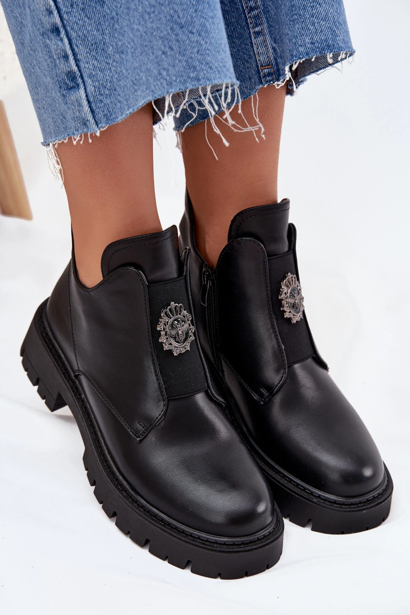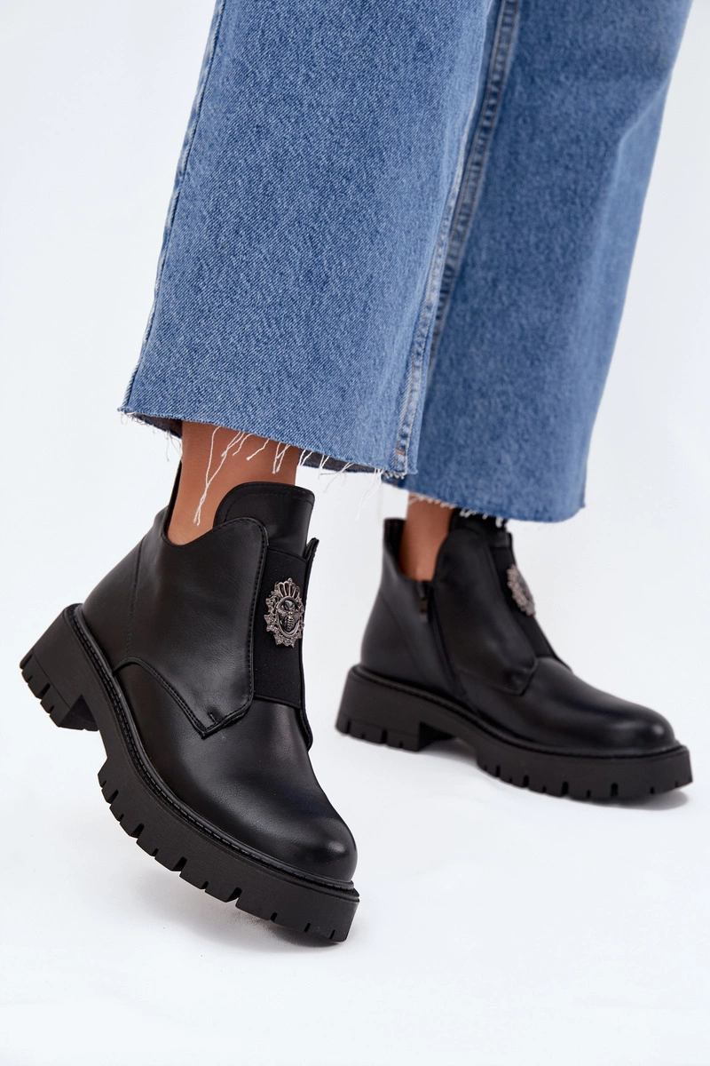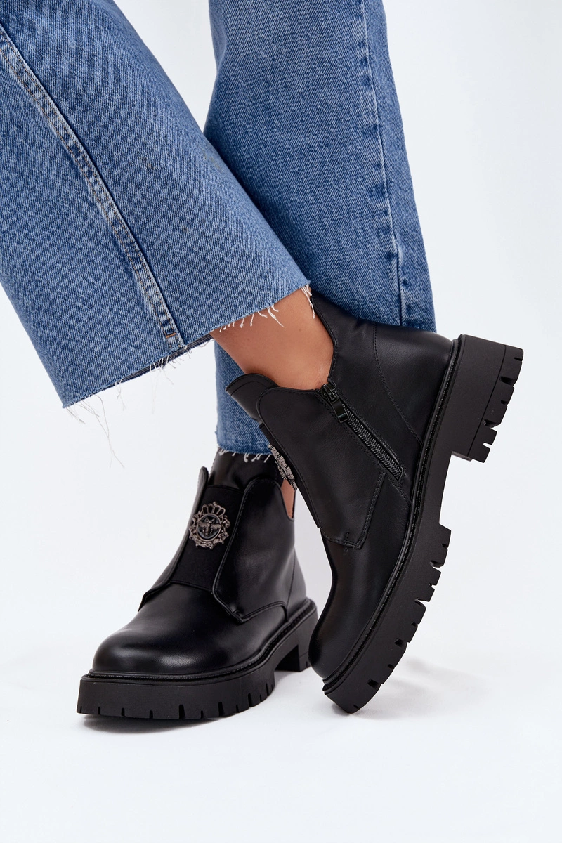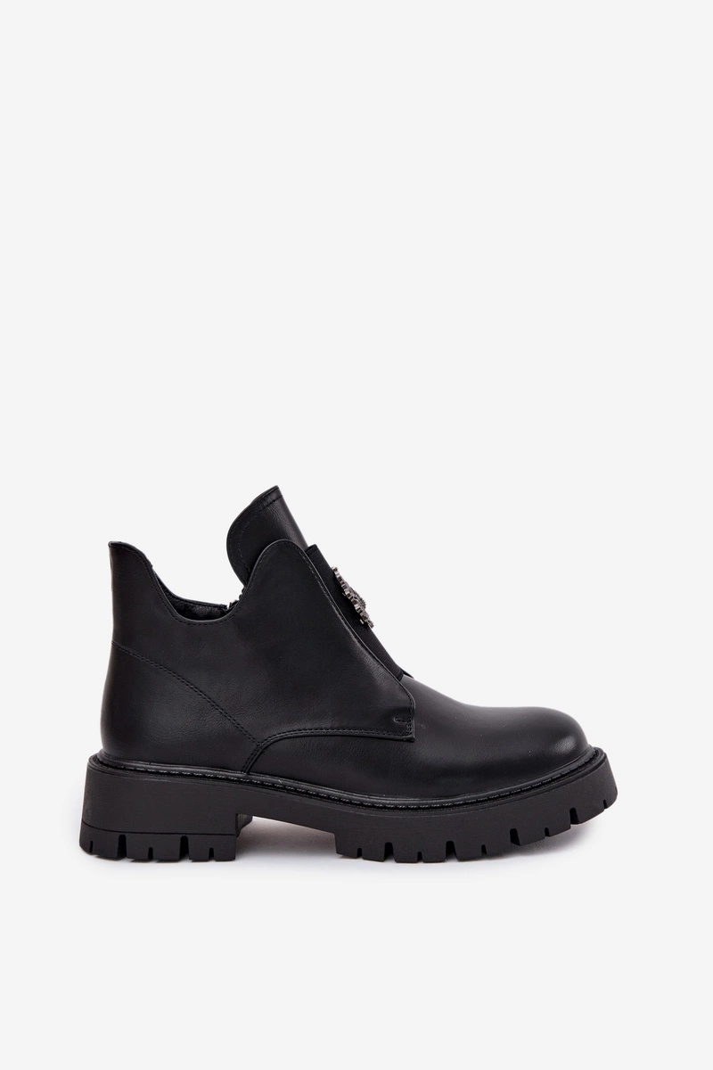 Ocieplane Niskie Botki Damskie Z Ozdobą Na Zamek Czarne Lavira