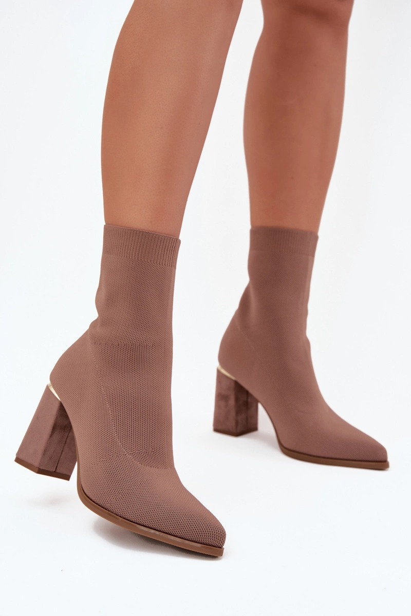 Materiałowe Wsuwane Botki Damskie Na Słupku Beżowe Virelle