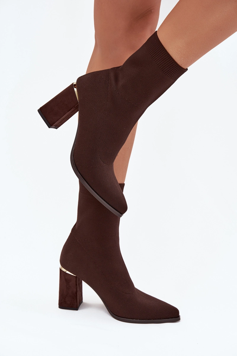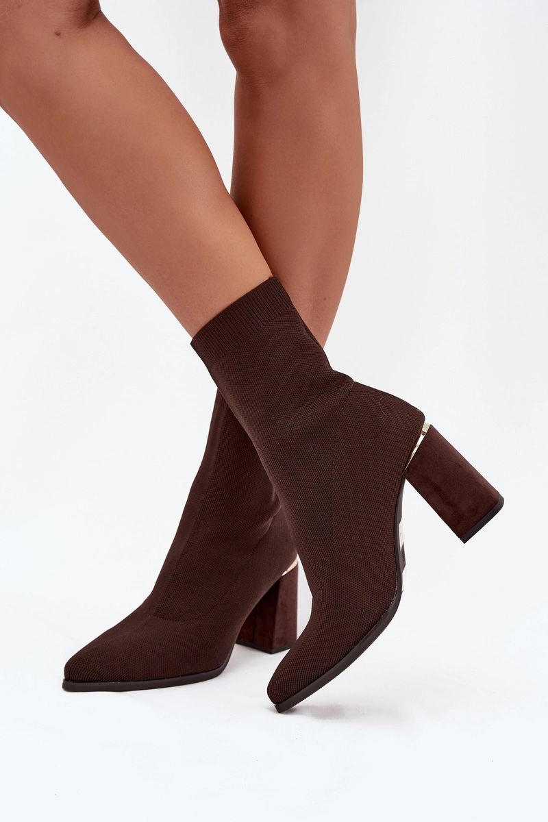Materiałowe Wsuwane Botki Damskie Na Słupku Czekoladowe Virelle