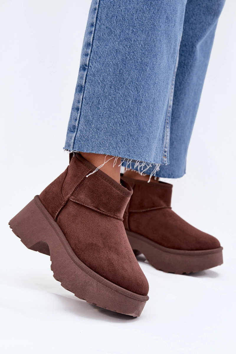 Śniegowce Damskie Niskie Wsuwane Ocieplane Futerkiem Brązowe Mavelle